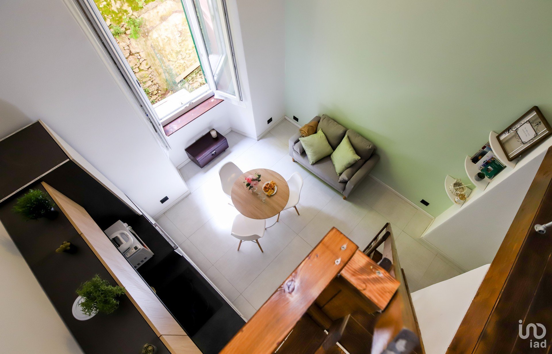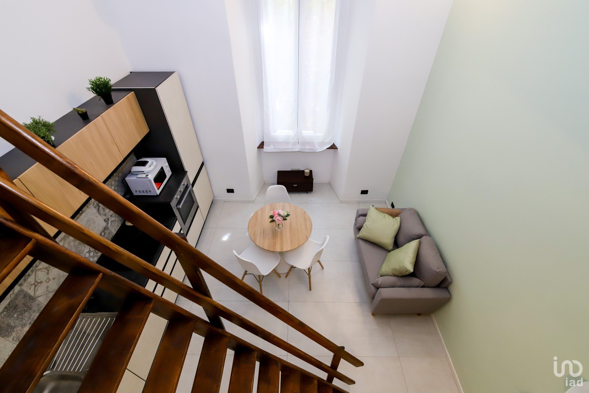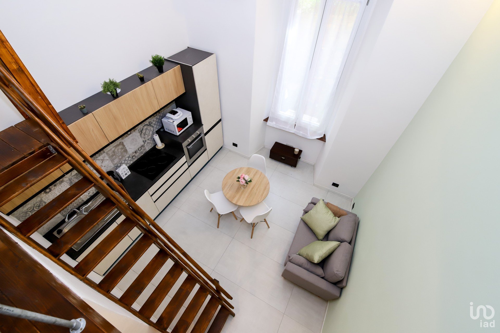 L'appartamento è stato integralmente ristrutturato con materiali di pregio, il connubio dei materiali impiegati si sposano egregiamente tra di loro, in uno stile Industrial che trova calore con l'elemento naturale del legno utilizzato e sapientemente bilanciato sia per la creazione del soppalco, sia per le rifiniture dell'alloggio stesso.