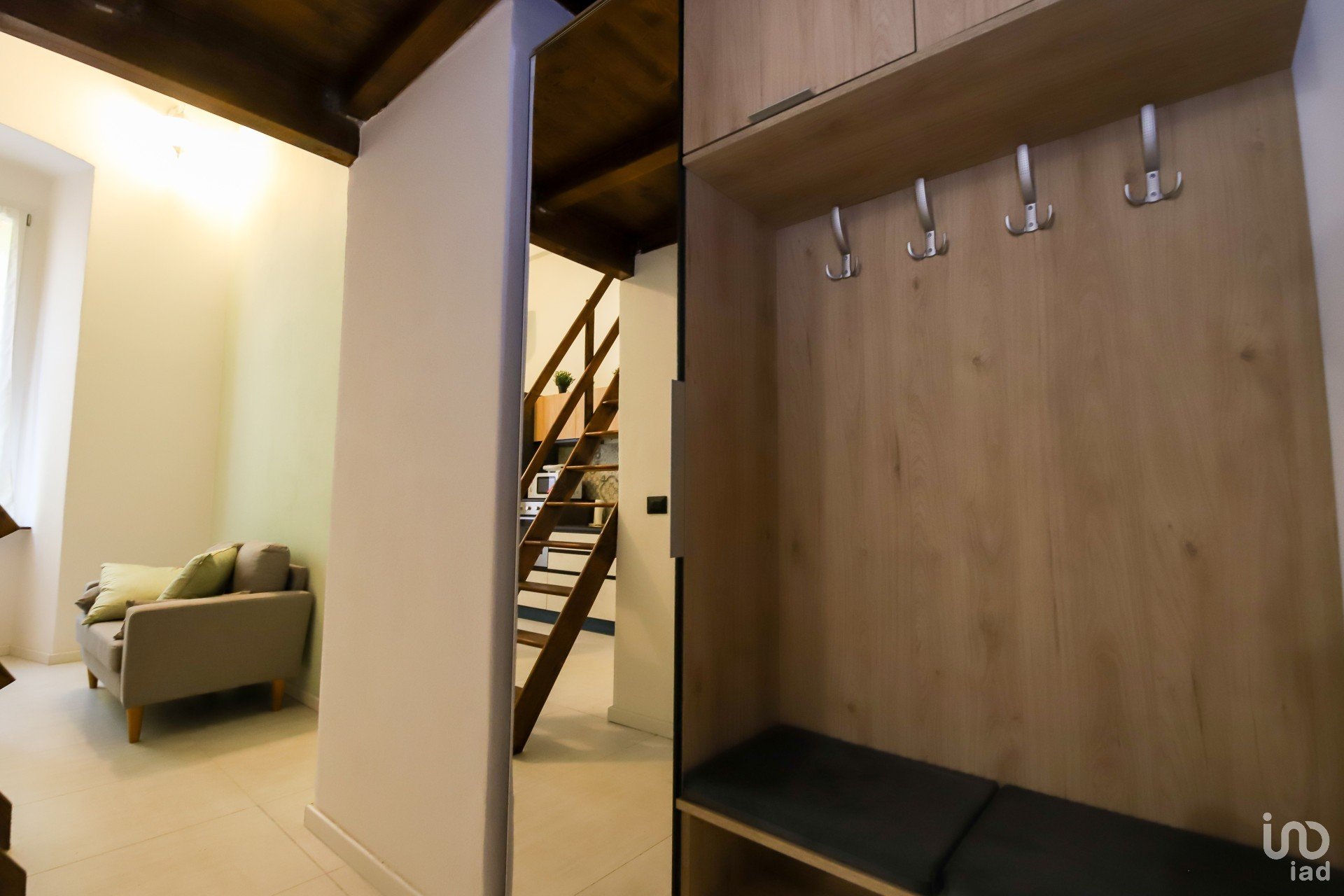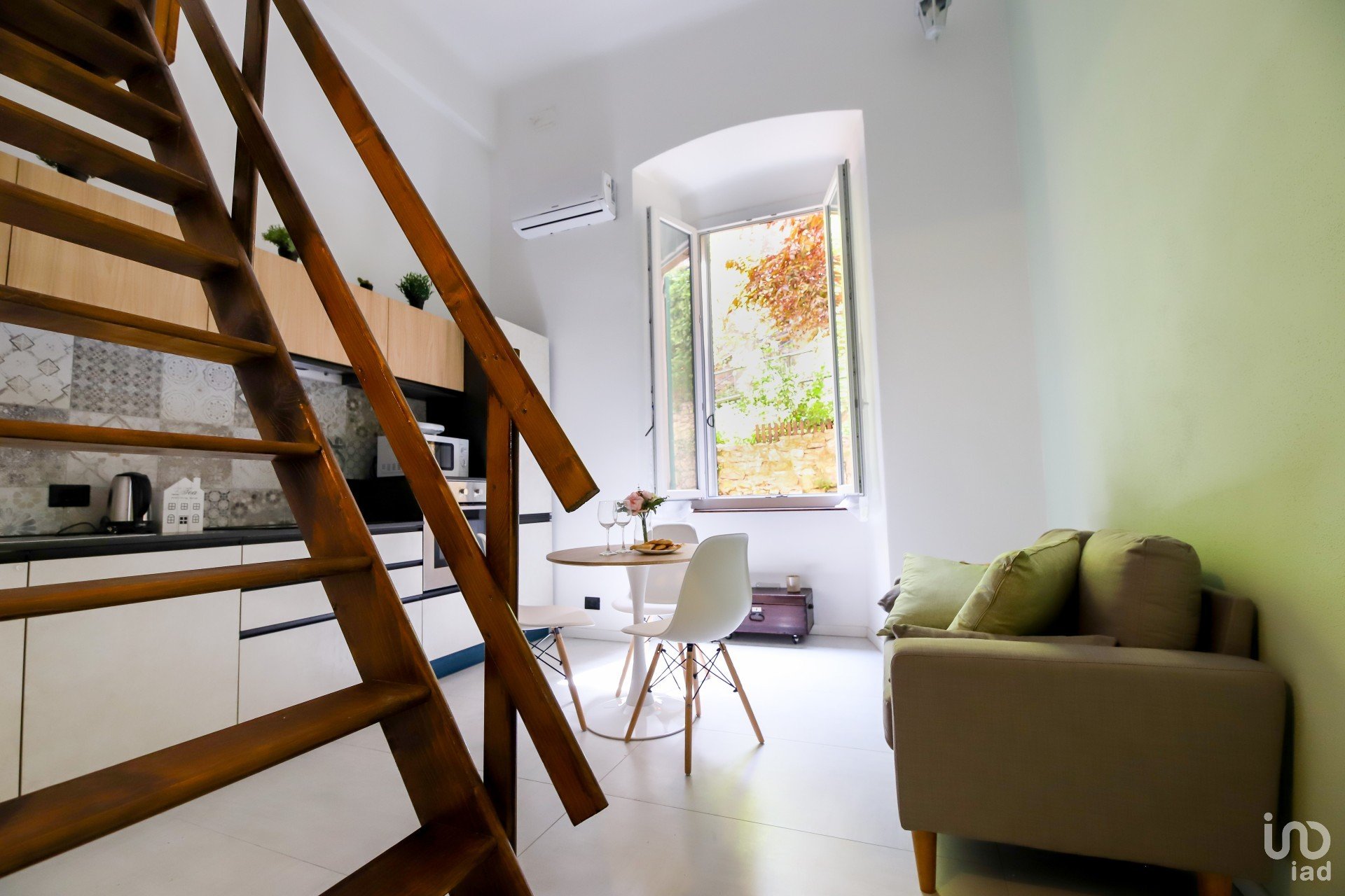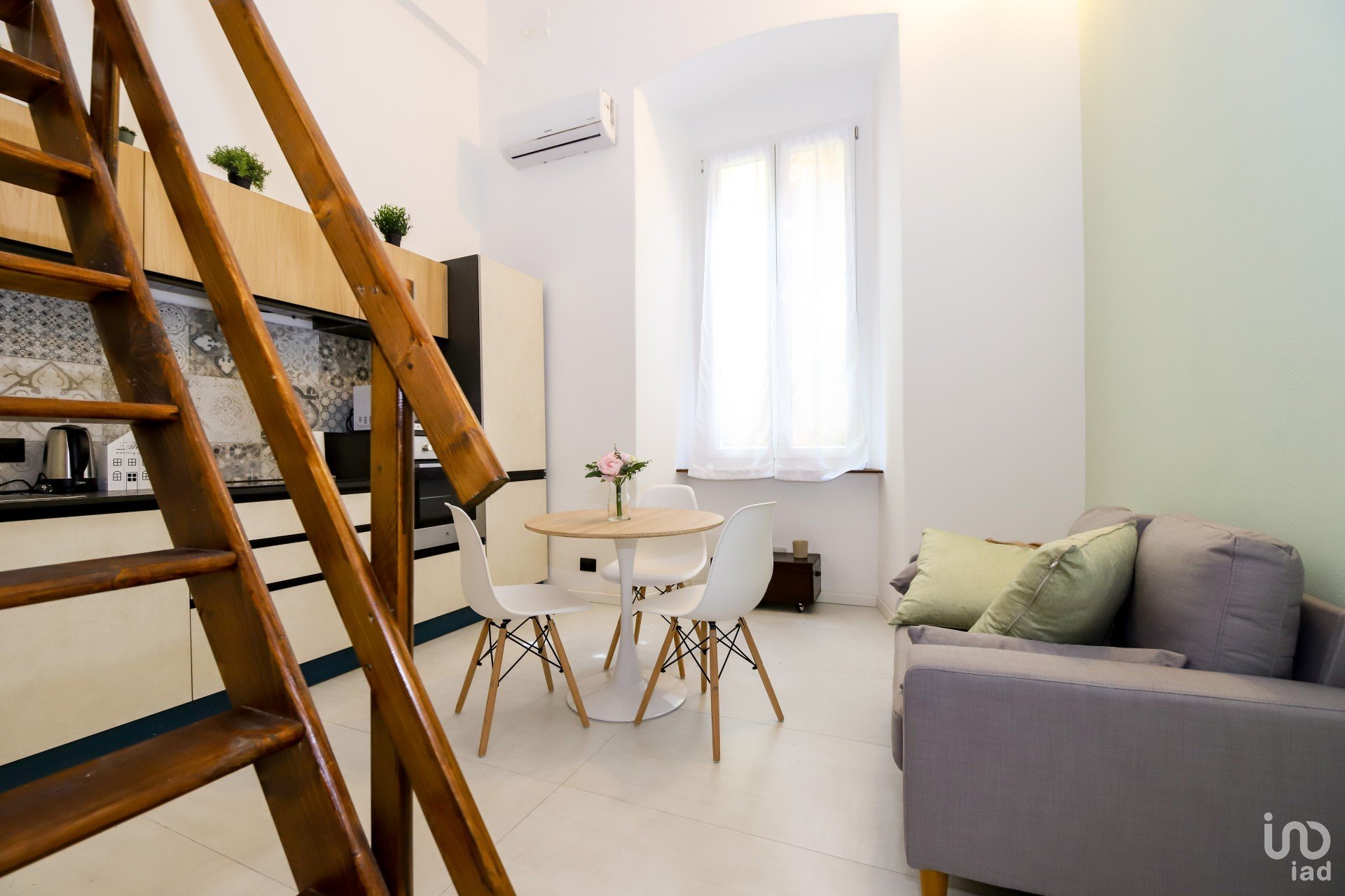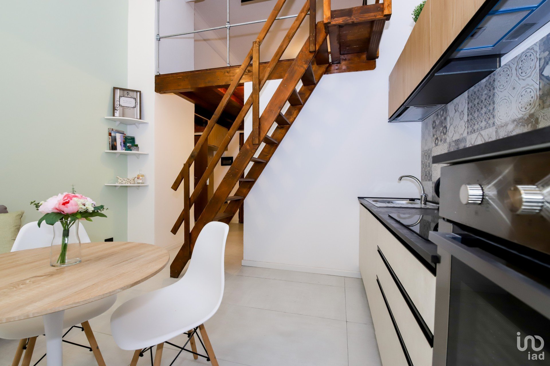 L'appartamento è stato integralmente ristrutturato con materiali di pregio, il connubio dei materiali impiegati si sposano egregiamente tra di loro, in uno stile Industrial che trova calore con l'elemento naturale del legno utilizzato e sapientemente bilanciato sia per la creazione del soppalco, sia per le rifiniture dell'alloggio stesso.