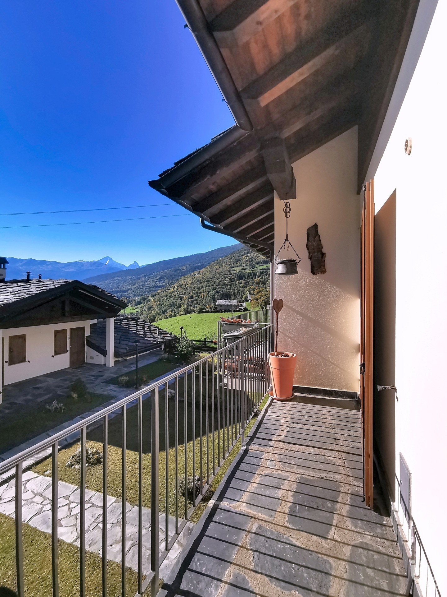 Esterno: gli spazi esterni sono un punto di forza. Oltre a due balconi esterni, goditi la tua privacy nella zona riparata dalle siepi, perfetta per allestire un angolo barbecue e organizzare grigliate con amici e famiglia. Sul lato opposto del terreno, interamente privato e ad uso esclusivo, si apre invece una magnifica vista panoramica sul fondo valle, lo scenario ideale per rilassarsi ammirando il tramonto.