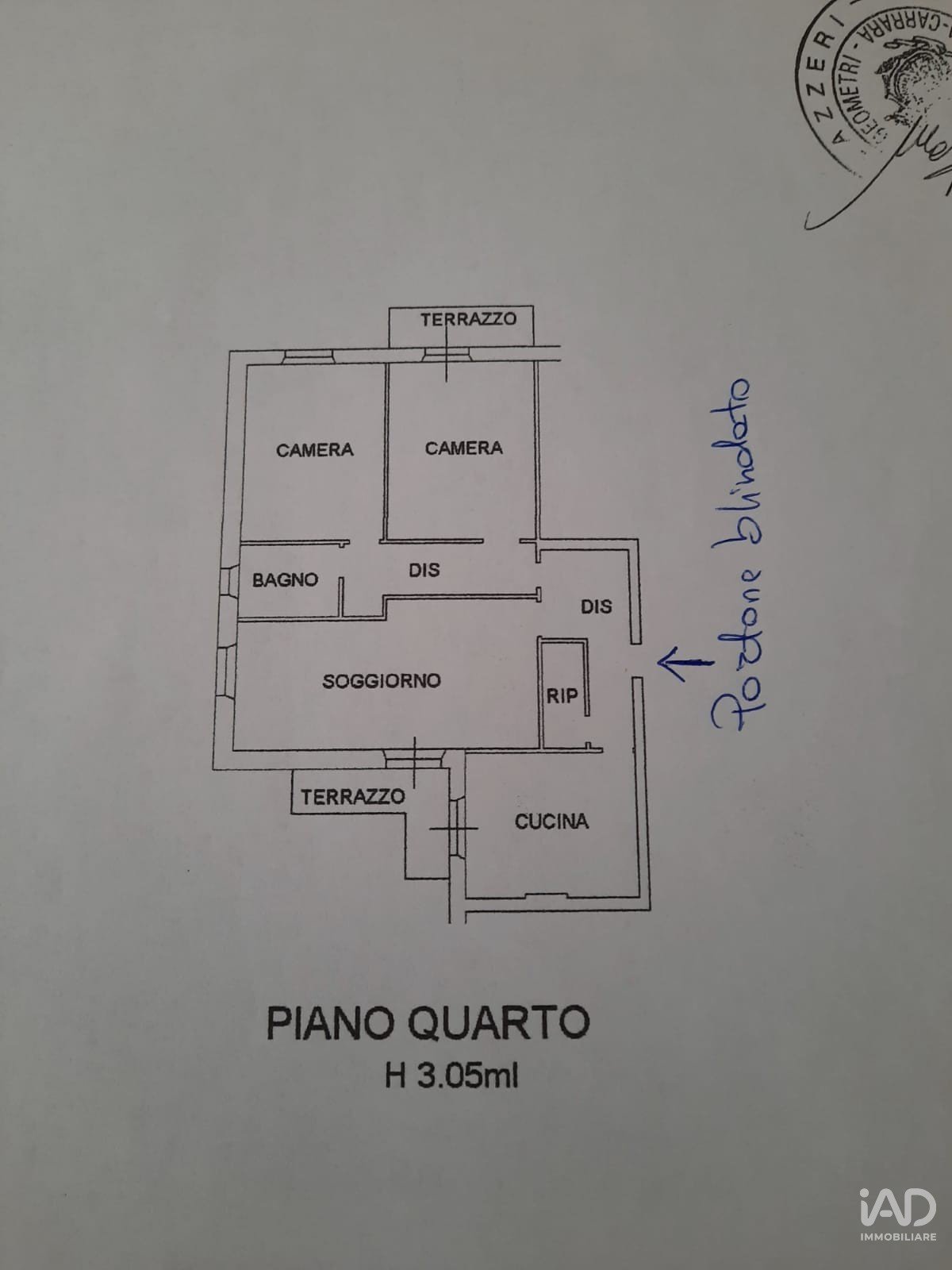 L'unità delle dimensioni interne pari a 120 mq circa oltre due balconi, internamente risulta essere cosi suddivisa: ingresso, cucina abitabile, ampio soggiorno, due camere da letto entrambe matrimoniali, bagno con vasca e finestra, due balconi con bella vista panoramica sulla Fortezza della Brunella.