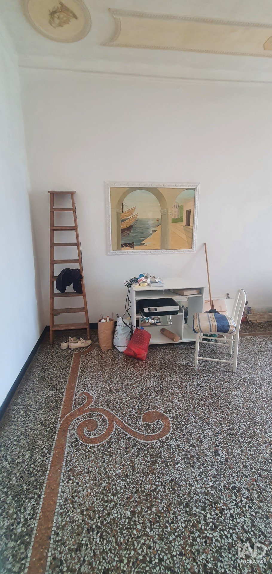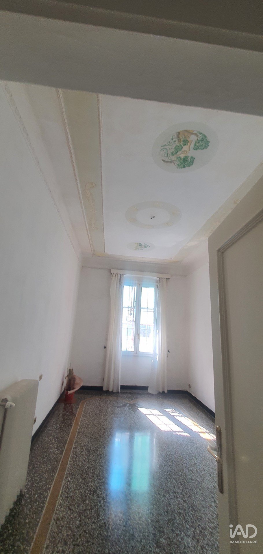 Entrando si è subito accolti in un ampio ingresso alla genovese, che ha alti soffitti affrescati, e pavimenti in marmo di graniglia decorati ,il biglietto da visita della casa!
