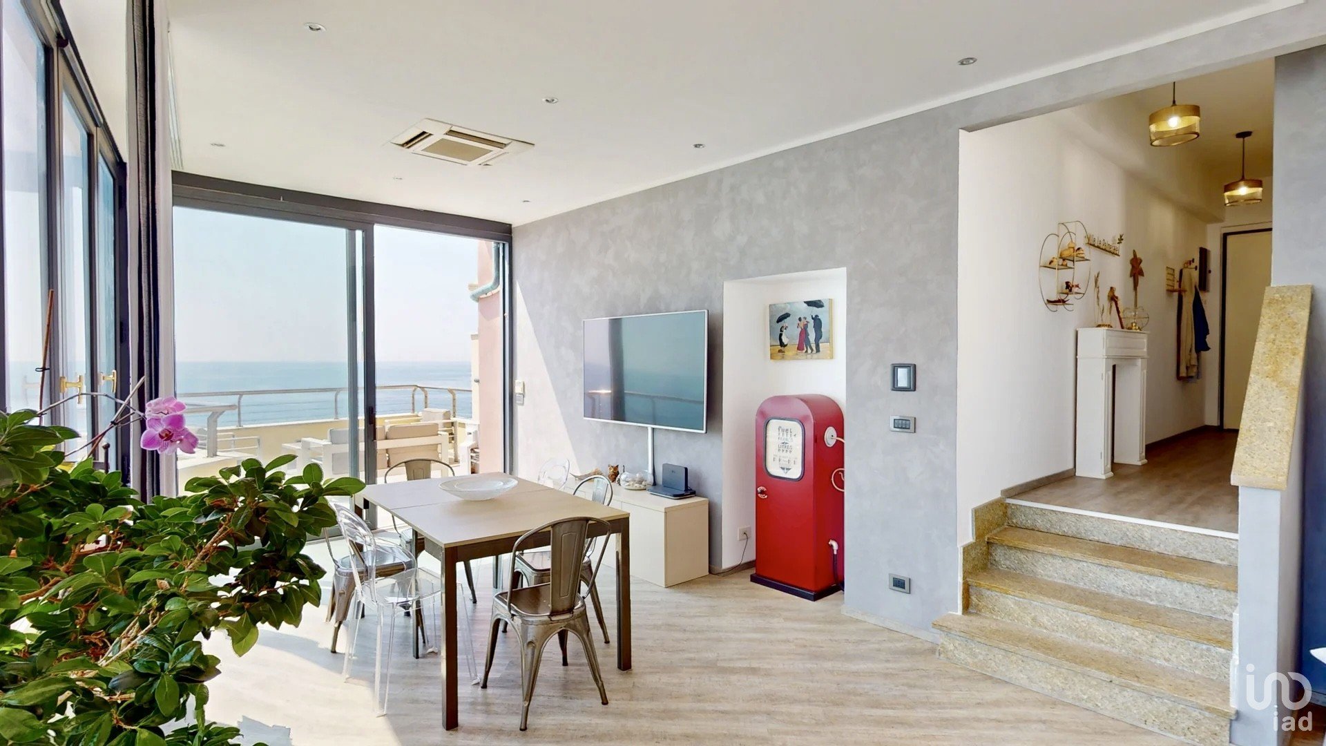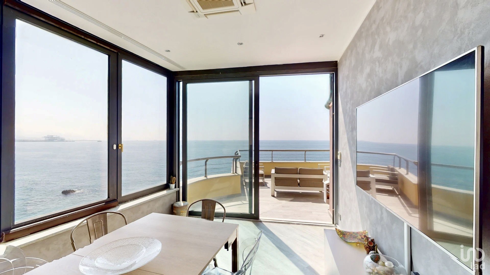 - Ampio soggiorno luminosissimo. Un vero gioiello della casa, con grandi finestre che si affacciano sulla terrazza panoramica, da cui potrai godere di splendidi tramonti sul mare.