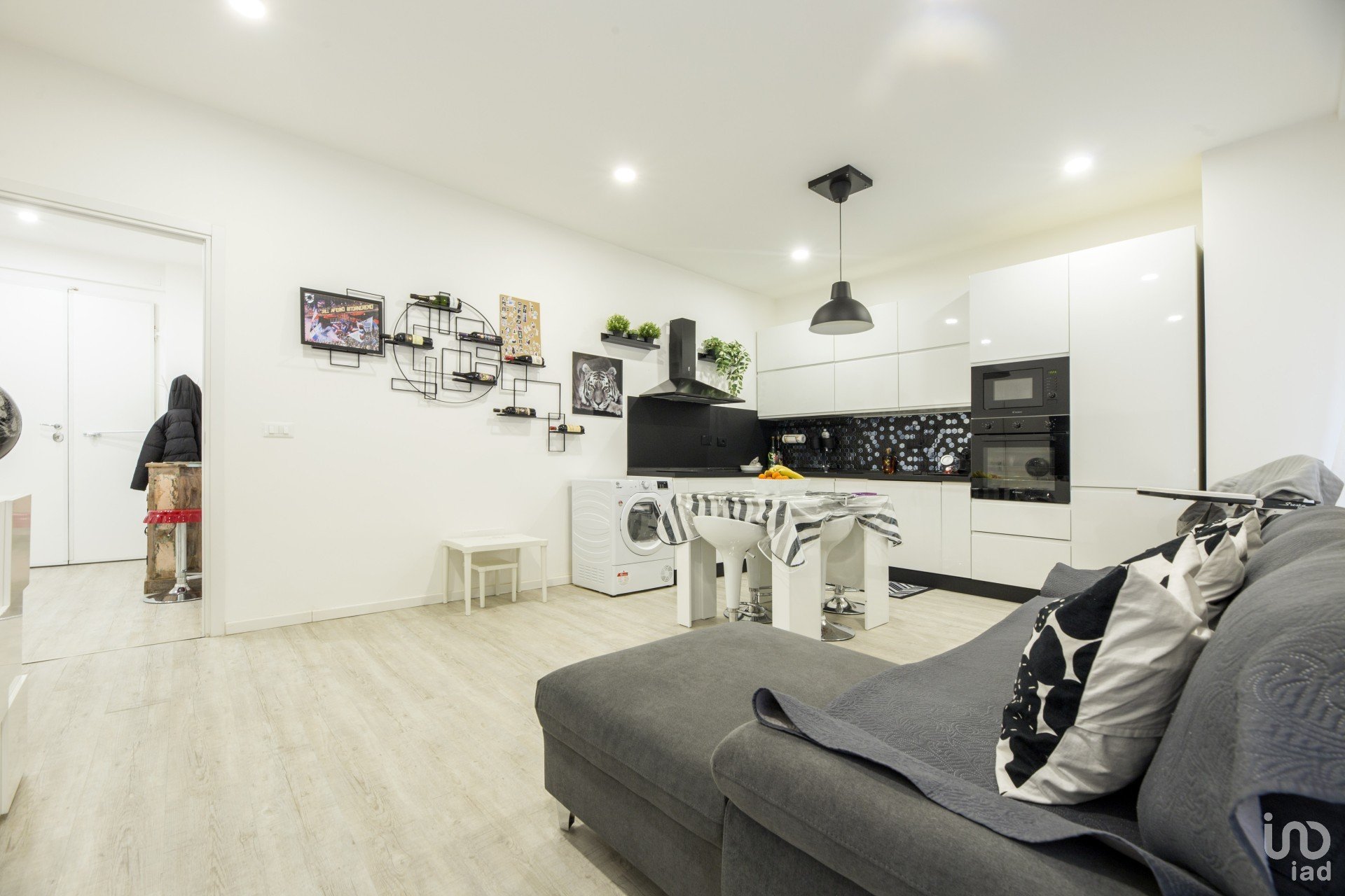 composto da ingresso due camere da letto un bagno e sala cucina open space con sfacciò ed accesso alle due terrazze una di 20 mq e l'altra di 30 mq .