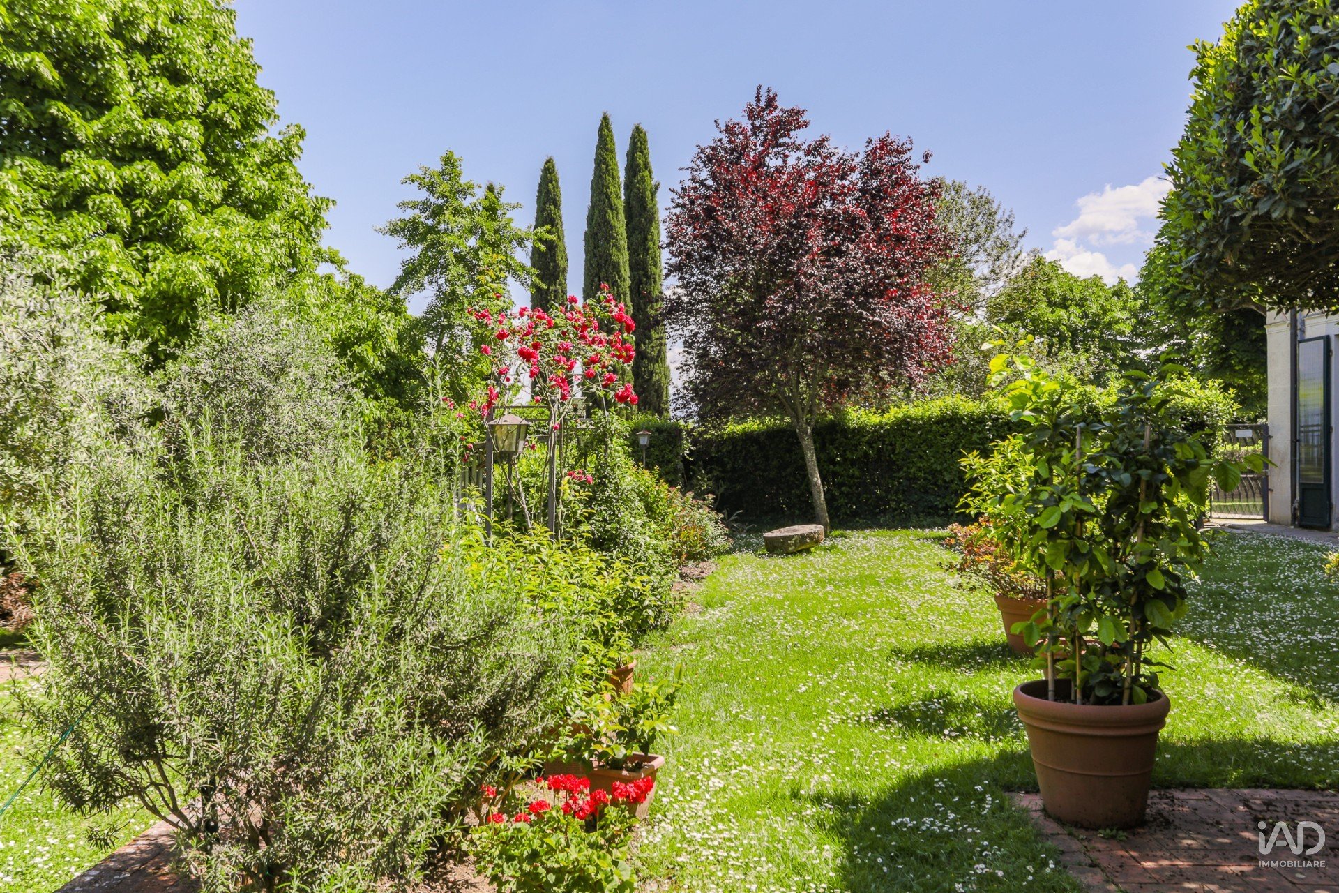 L'appartamento si apre su un meraviglioso giardino privato di circa 700 mq, accessibile direttamente da ogni ambiente tramite ampie porte-finestre.