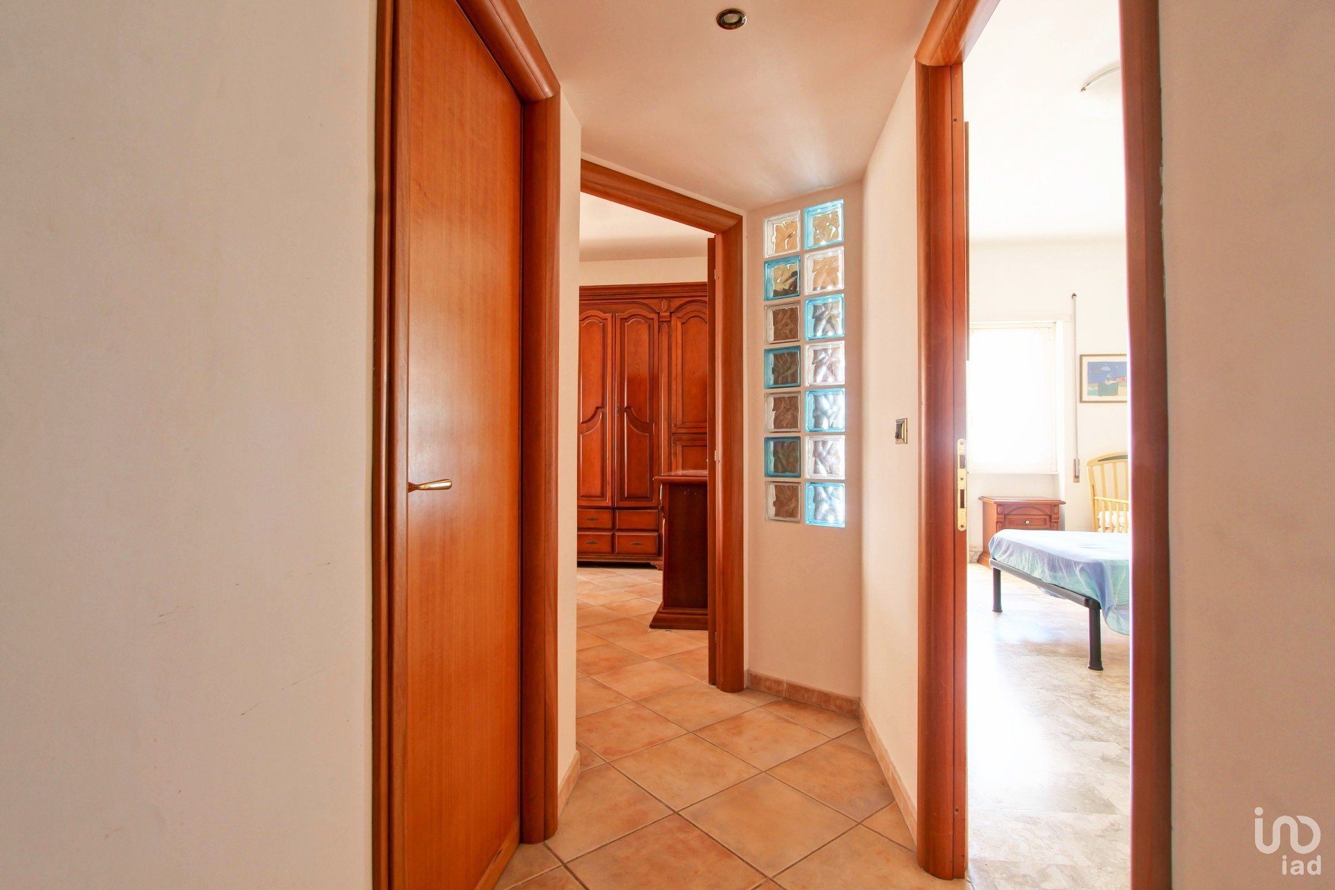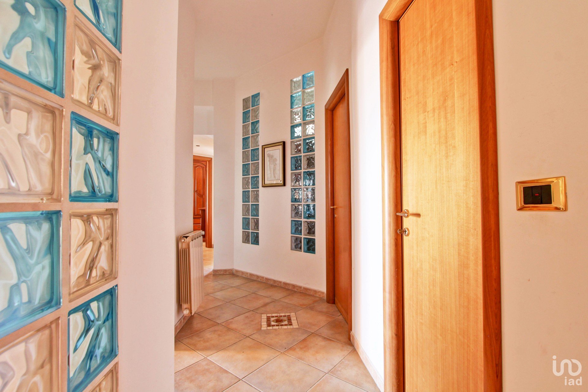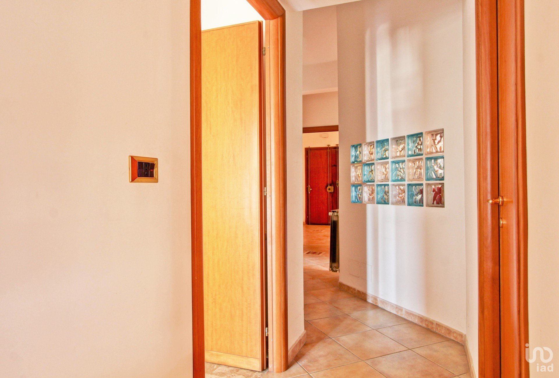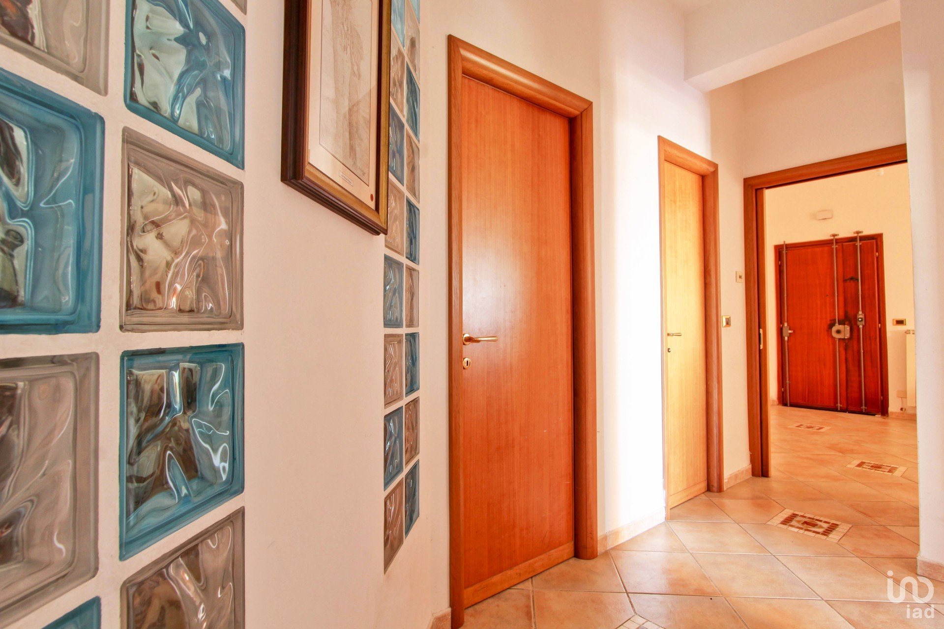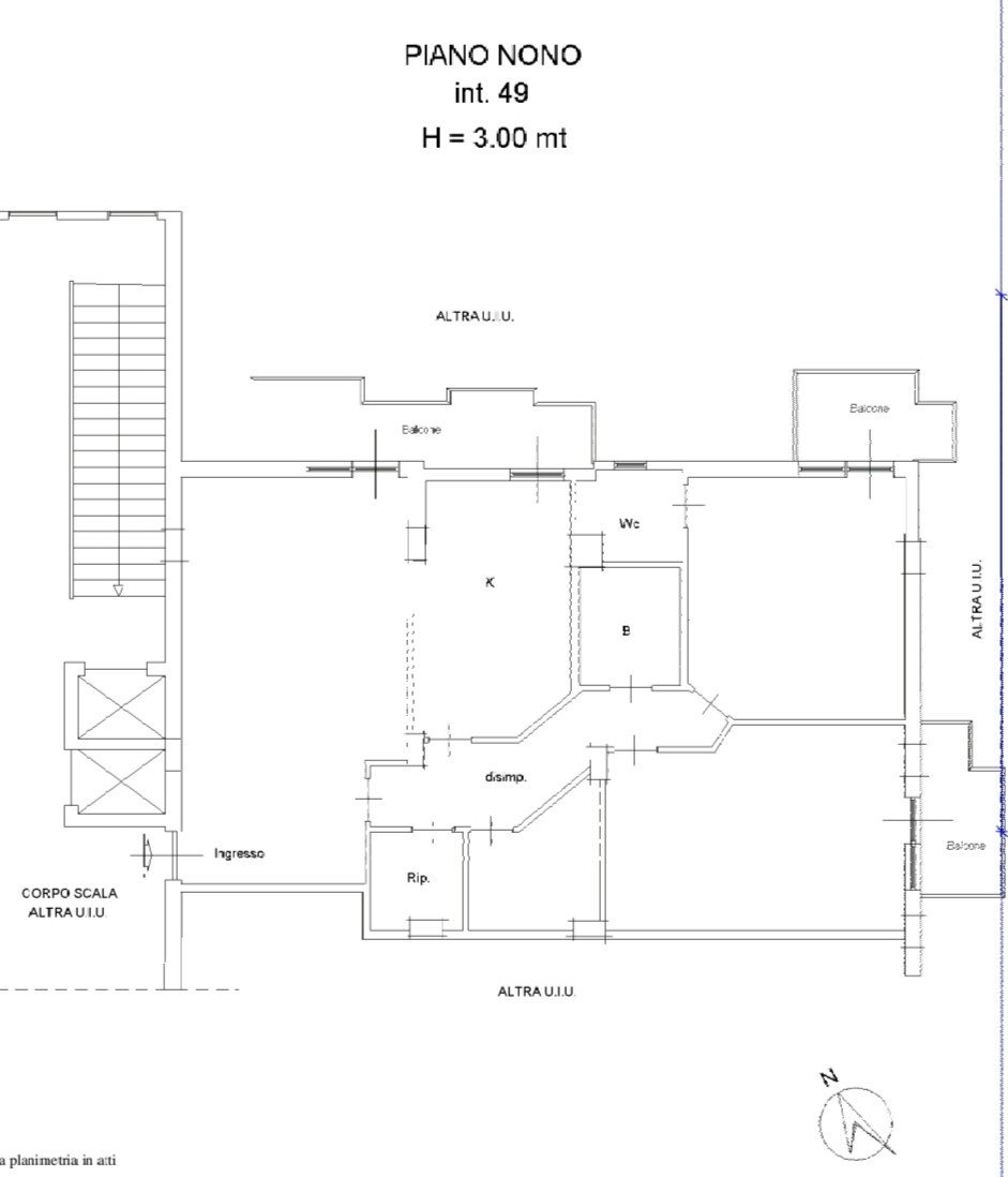 L’appartamento è composto da un ampio soggiorno e una cucina in muratura comodamente vivibile come zona pranzo, serviti entrambi da un balcone, due camere da letto matrimoniali, ognuna con il proprio balcone di pertinenza, due bagni, di cui uno con doccia e uno con vasca, corridoio con soppalco, uno studiolo e un pratico ripostiglio.