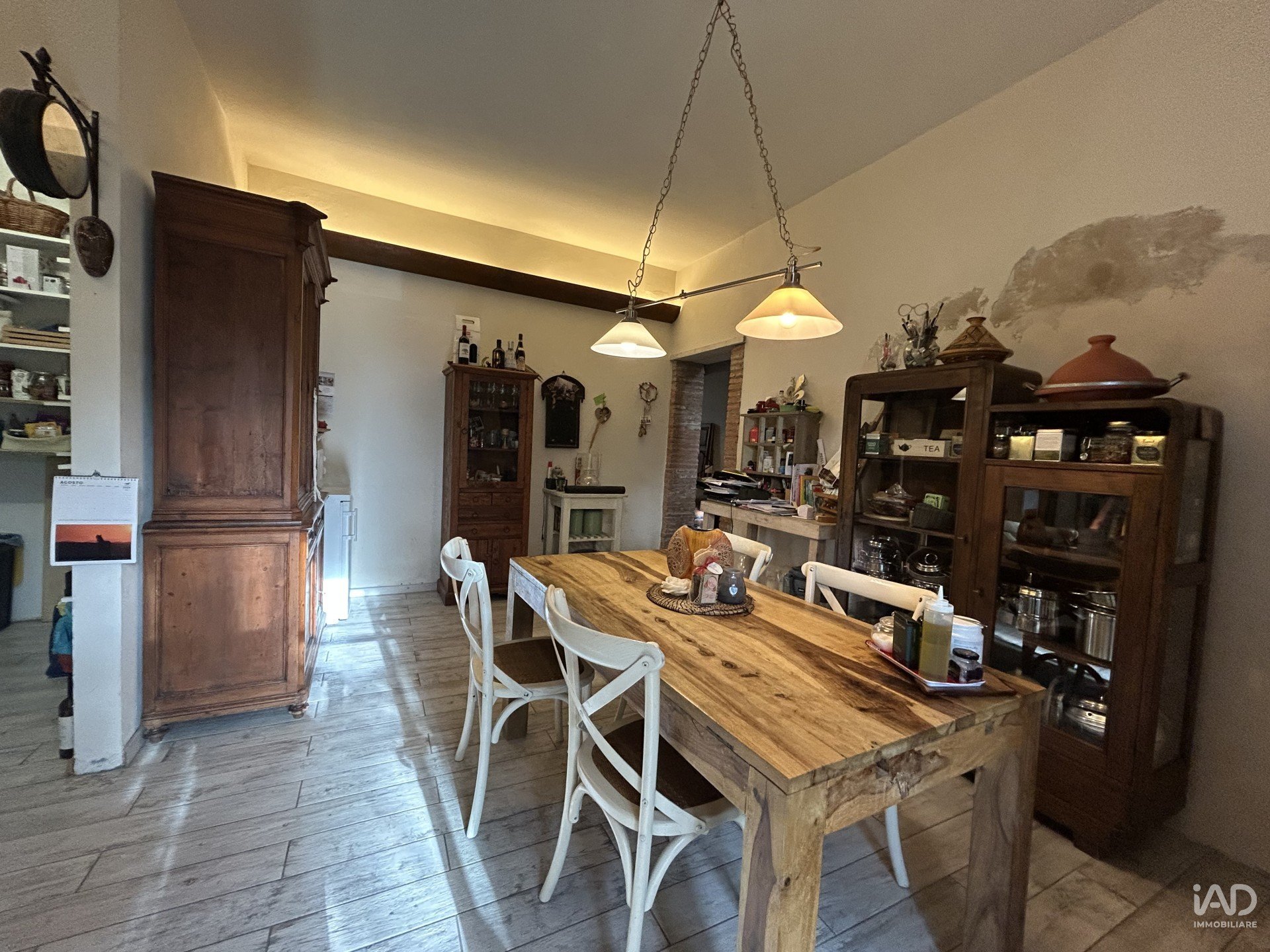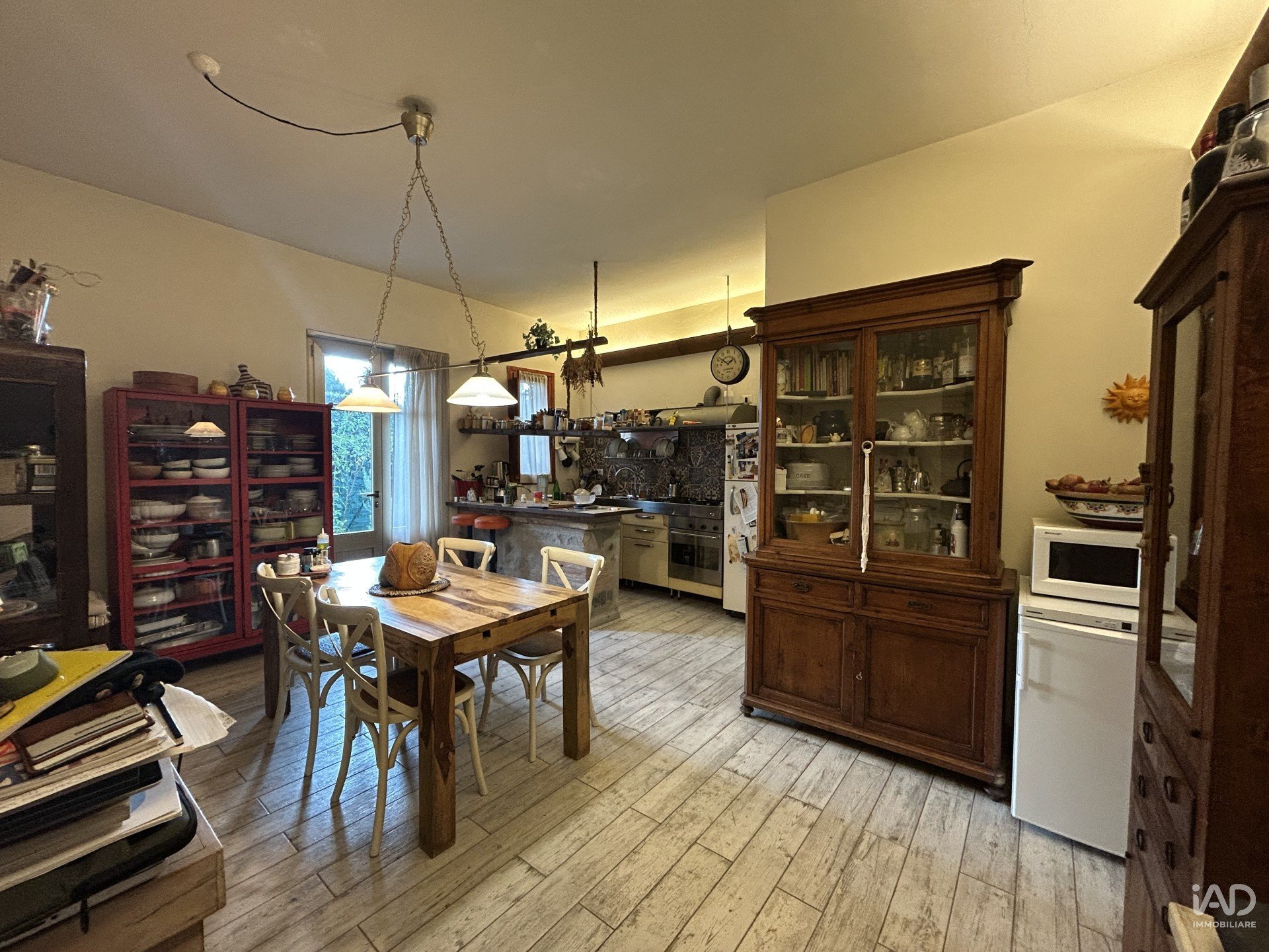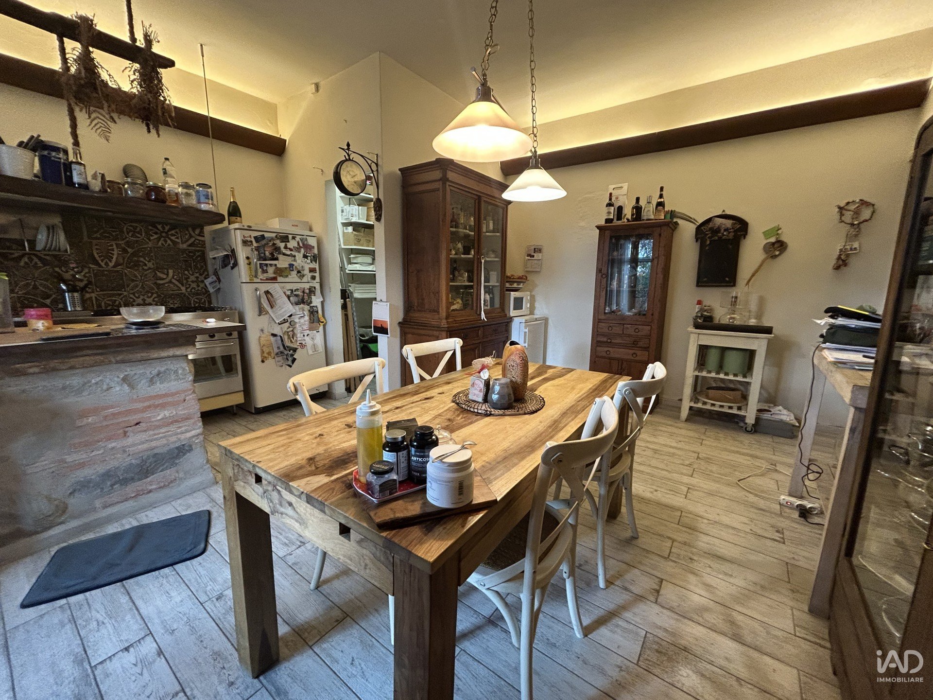 Al piano terra troviamo una spaziosa zona giorno open space con cucina a vista, penisola in muratura, dispensa, e accesso diretto al giardino/resede. Un servizio. L’atmosfera è accogliente, con travi a vista, pavimenti in gres effetto legno e arredi in legno massello che donano carattere e autenticità.
