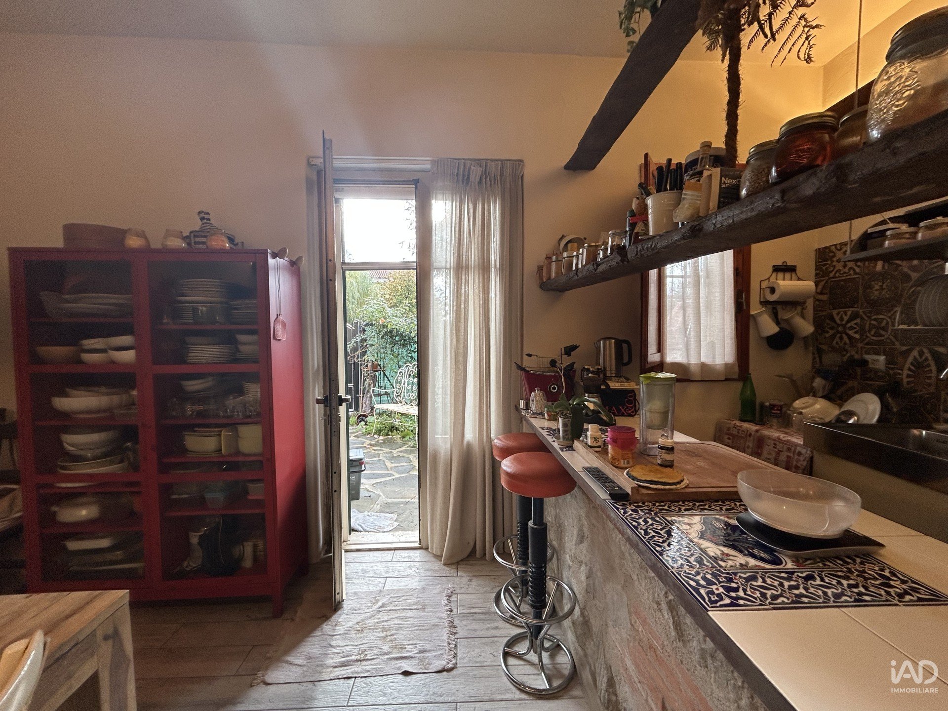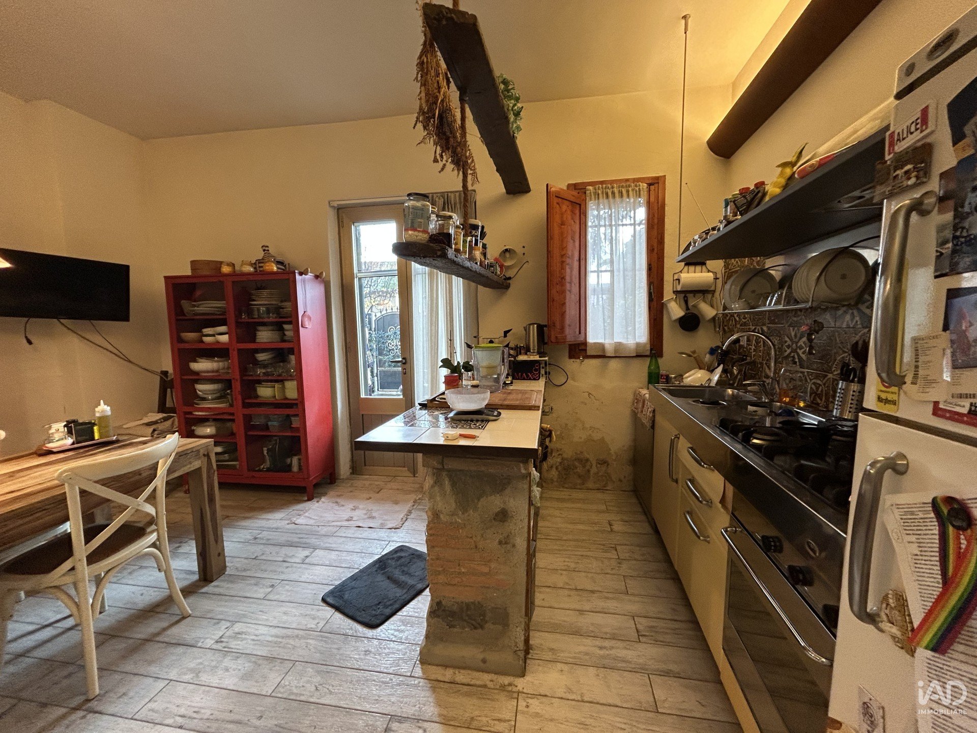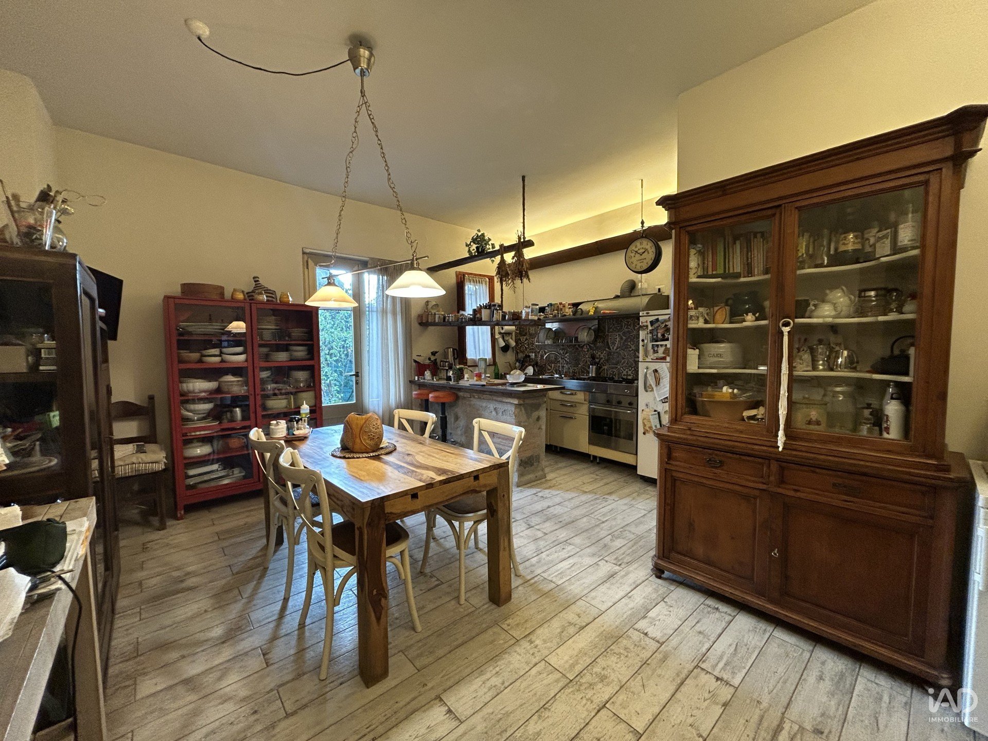 Al piano terra troviamo una spaziosa zona giorno open space con cucina a vista, penisola in muratura, dispensa, e accesso diretto al giardino/resede. Un servizio. L’atmosfera è accogliente, con travi a vista, pavimenti in gres effetto legno e arredi in legno massello che donano carattere e autenticità.