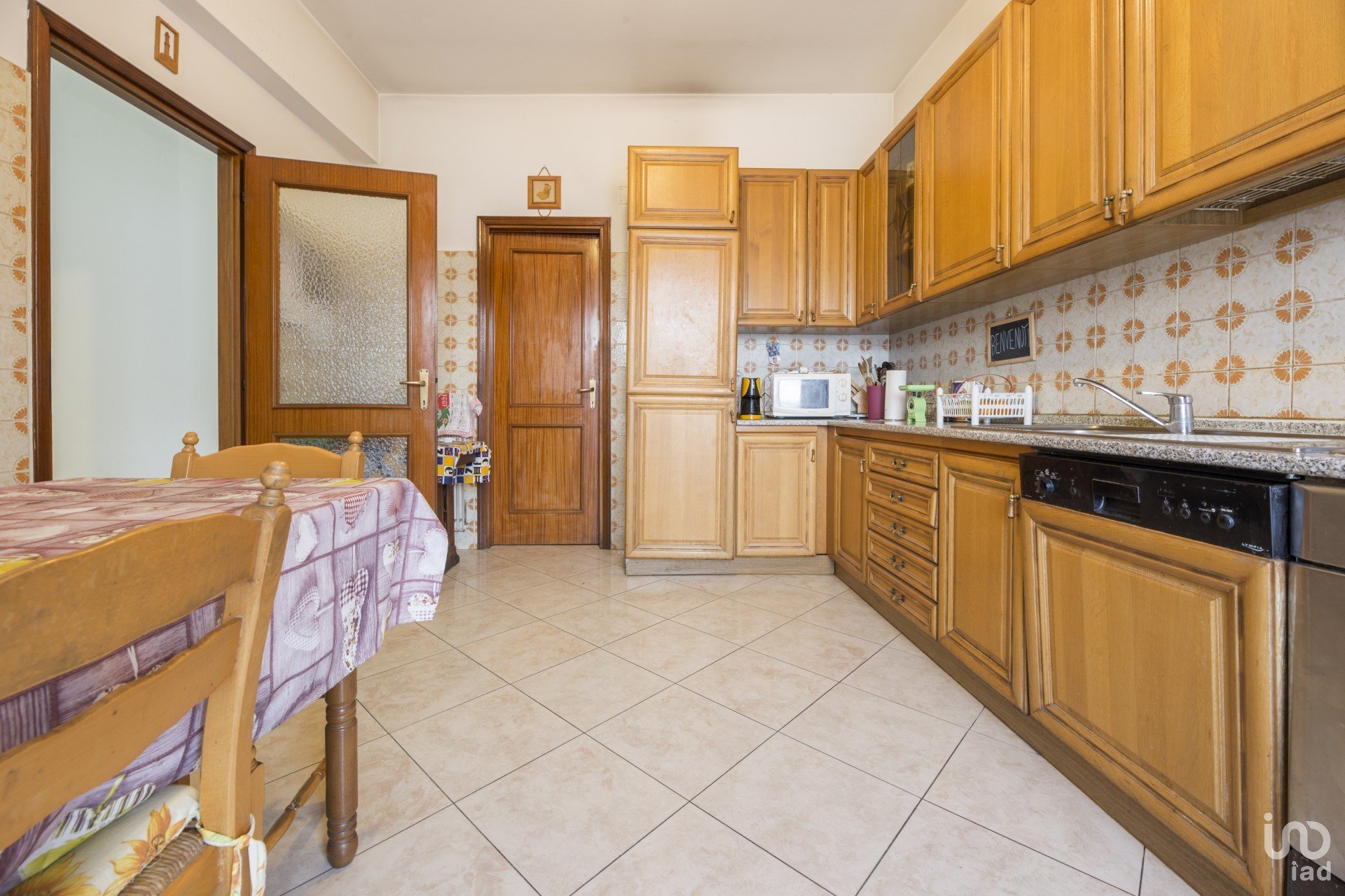 Composto da ingresso sala cucina grande con dispensa due camere matrimoniali una camera singola e due bagni uno grande con finestra ed un altro di servizio .