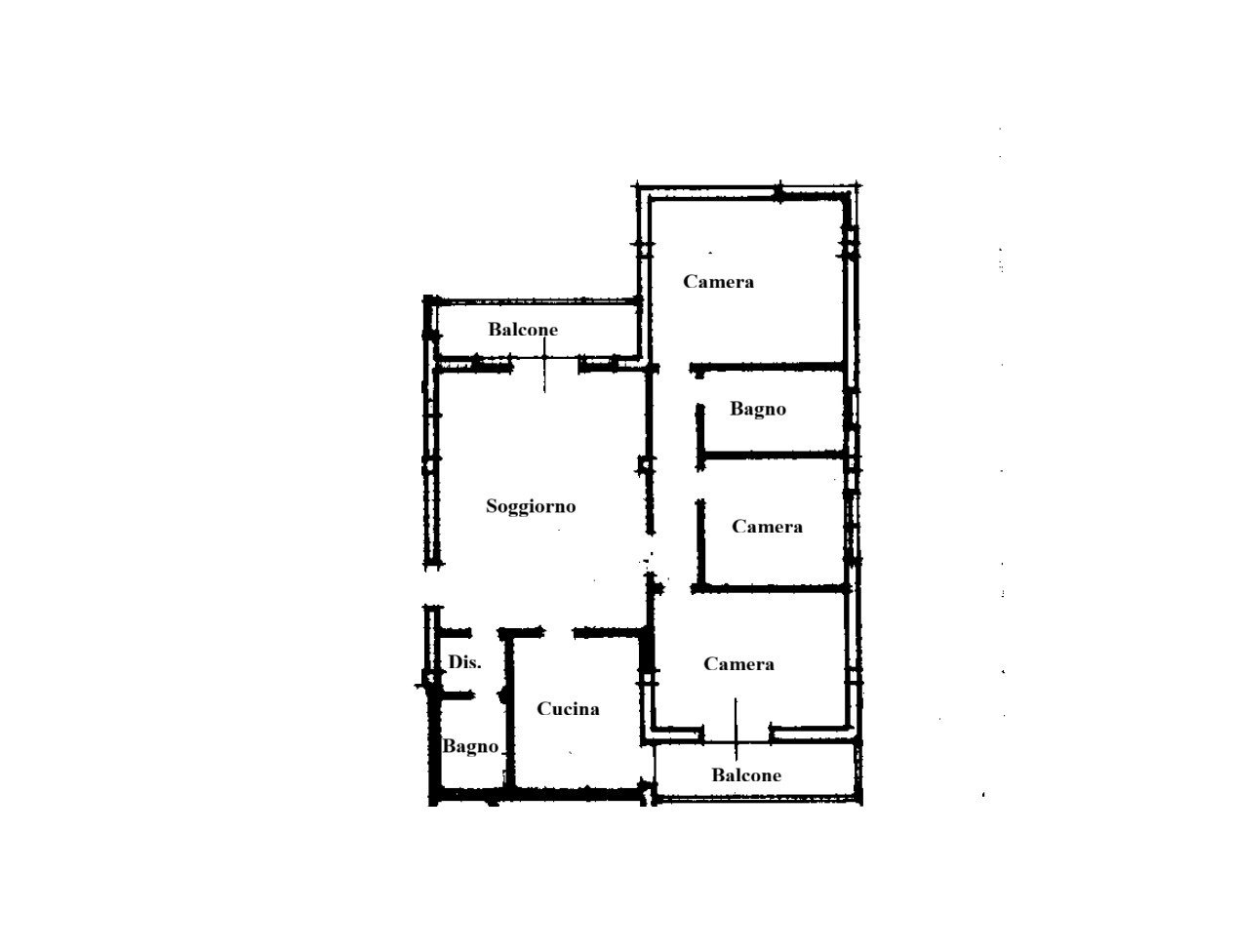 La casa offre un ampio soggiorno con balcone, cucina abitabile separata con secondo balcone, tre camere da letto (due matrimoniali e una doppia) e due bagni, offrendo tutto lo spazio necessario alla vita quotidiana di una famiglia.