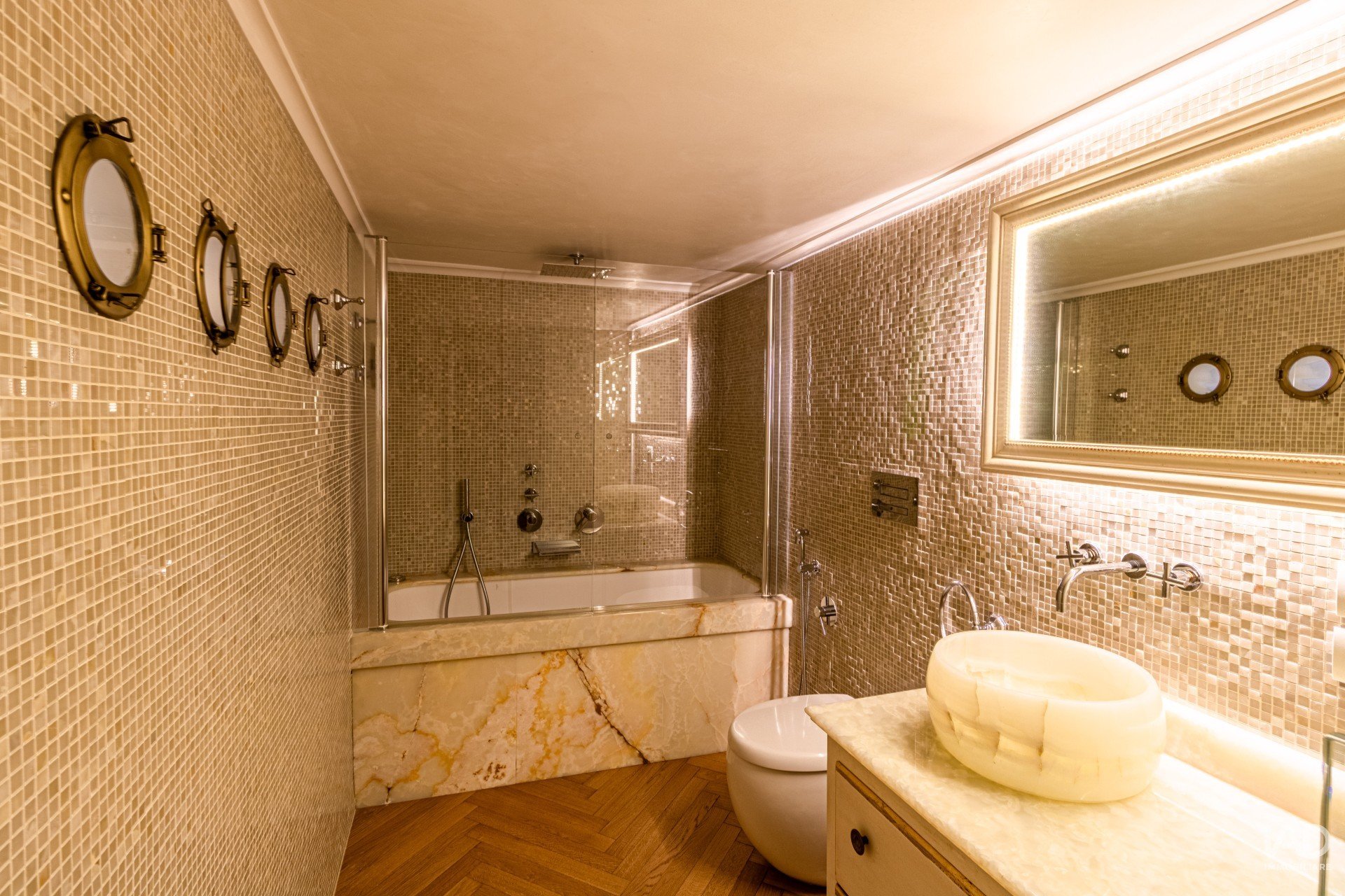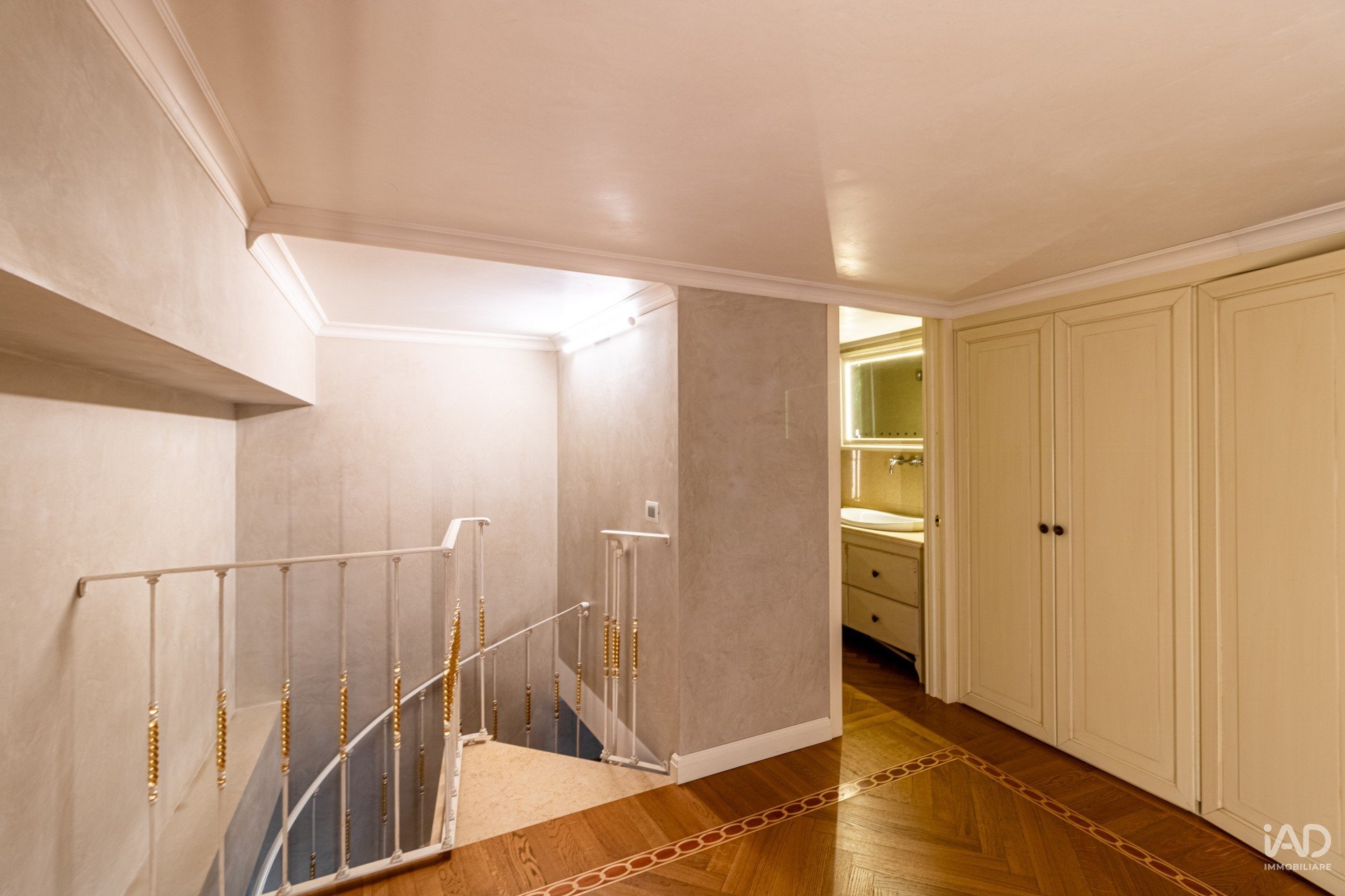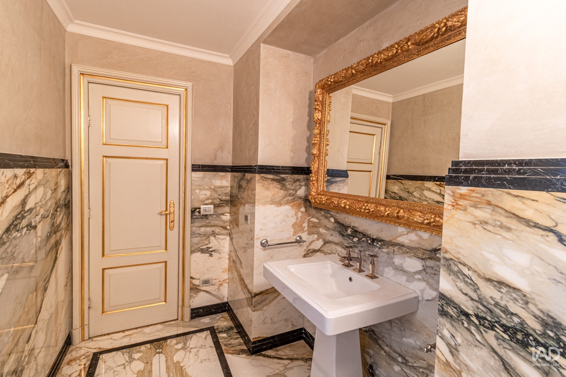 Complessivamente, l’appartamento dispone di cinque ampie stanze e quattro bagni di grande eleganza, rifiniti con marmi pregiati, specchiere dorate e rubinetterie di design.