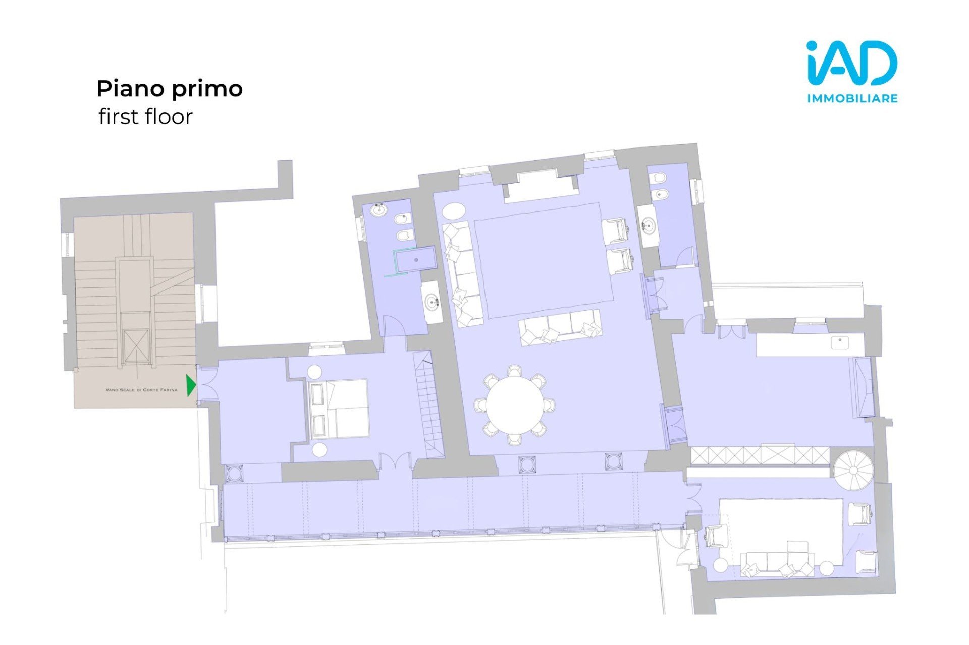 L’ingresso accoglie con immediata maestosità, rivelando la cura e la nobiltà dell’edificio.