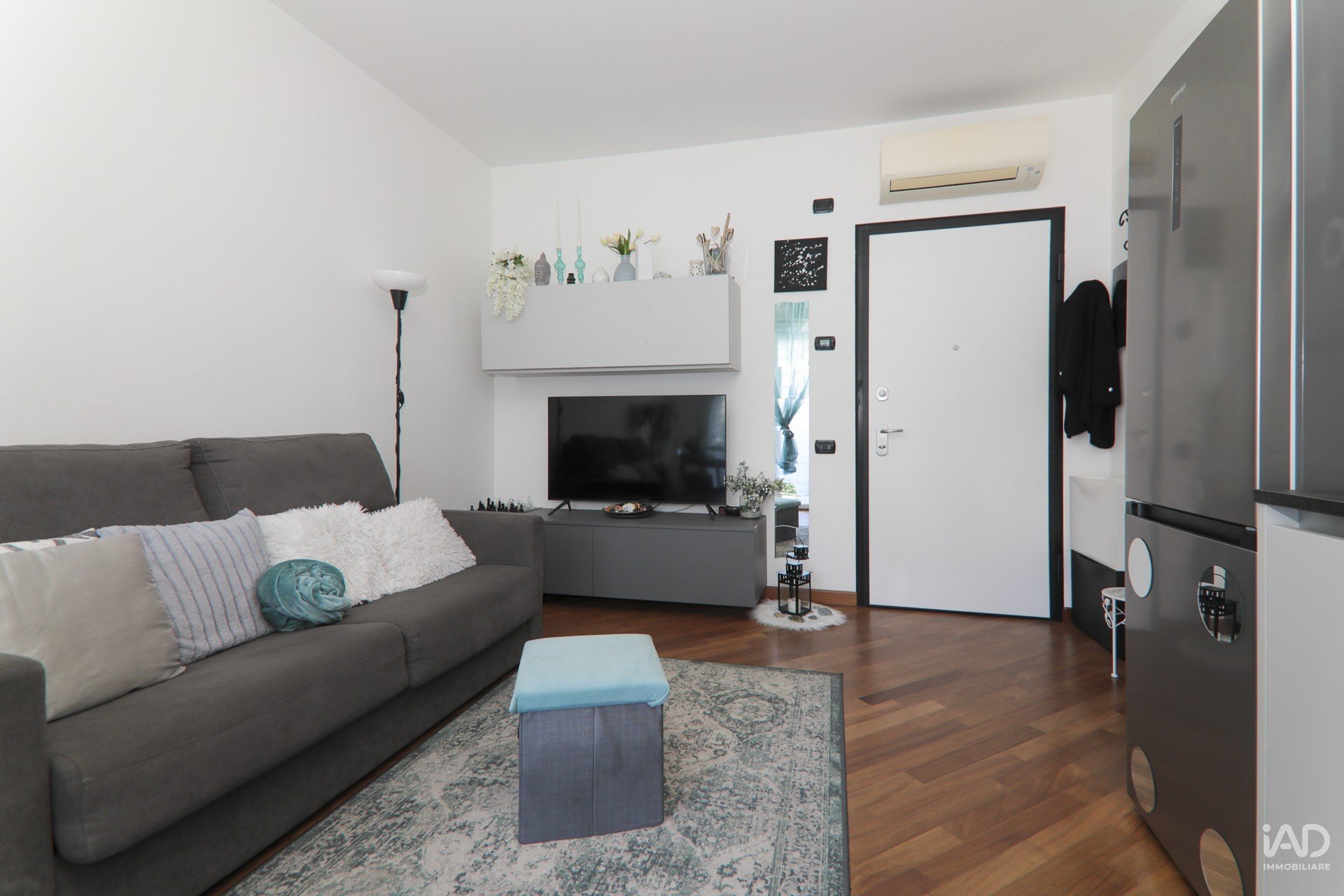 I pavimenti sono in pregiato parquet in ogni ambiente, ad eccezione del bagno dove troviamo un gres porcellanato prima scelta; le finestre e le portefinestre sono realizzate con vetro camera a taglio termico e con struttura a vetro continuo per garantire il migliore isolamento termoacustico; le porte interne sono di design; la porta d'ingresso blindata è di ultima generazione con piastra di sicurezza e nottolino antitrapano; il riscaldamento è centralizzato tramite sistema di teleriscaldamento condominiale con regolazione per mezzo di un cronotermostato che consente di abbattere drasticamente i costi di gestione; il videocitofono è costituito da pulsantiera con telecamera e gruppo fonico ed è inoltre presente nell'appartamento l'impianto di condizionamento sia nella zona living che nella zona notte.