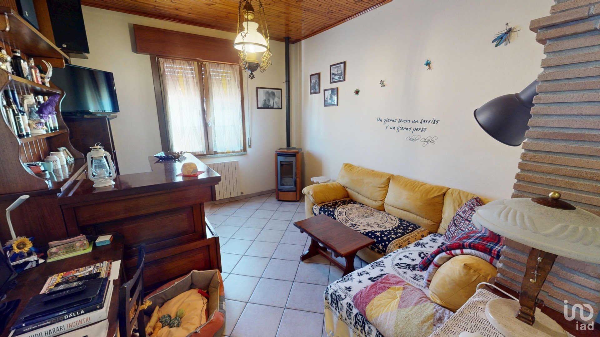 •Ampia sala con stufa a legna e un caratteristico bancone da bar: l’ambiente perfetto per ricevere ospiti o rilassarsi in compagnia