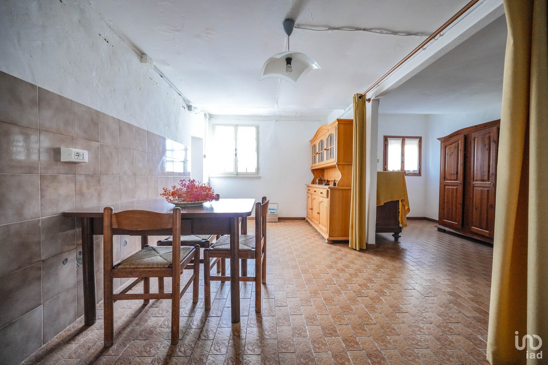 Al piano terra abbiamo da una parte un salone con camino, un bagno e una zona lavanderia, dall'altra parte una cucina abitabile con accesso ad un altra stanza che può avere diverse destinazioni (era stata adibita a camera da letto); salendo al piano superiore troviamo due ampie camere da letto con solaio di copertura a vista (classico coperto in legno con tavelle in cotto e travetti in legno).