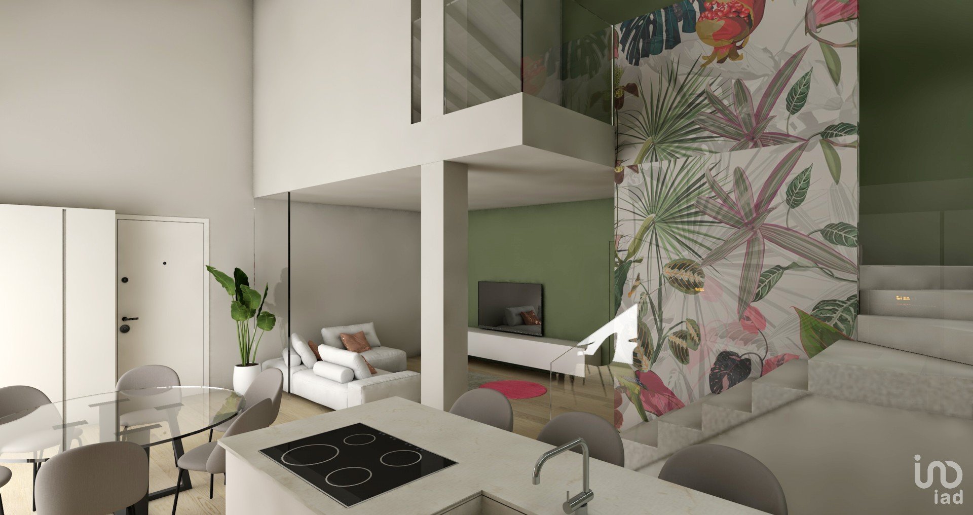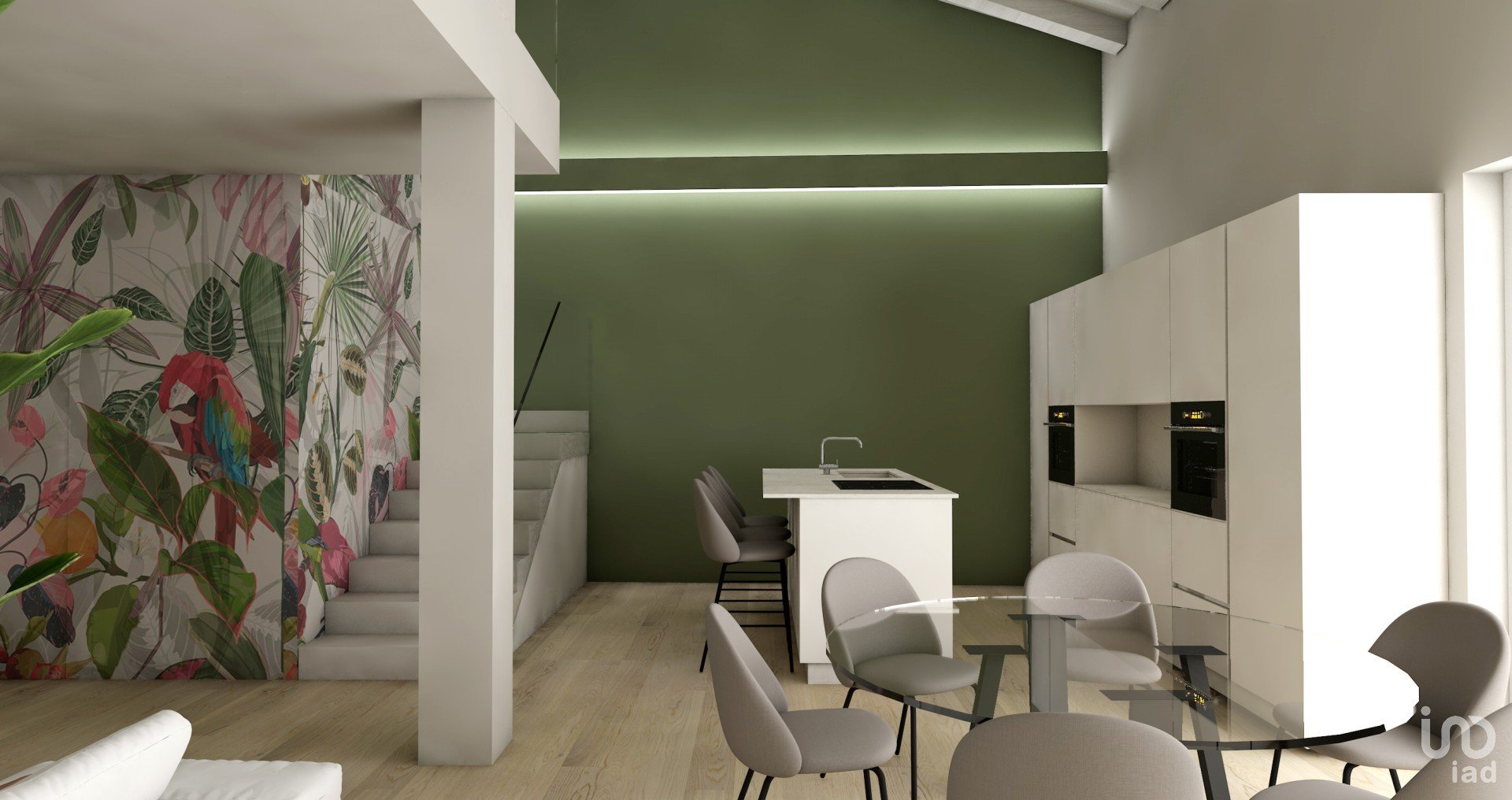 Piano Terra: ampio open space soggiorno-cucina, lavanderia funzionale, due camere da letto ideali per ospiti o uso studio, bagno.