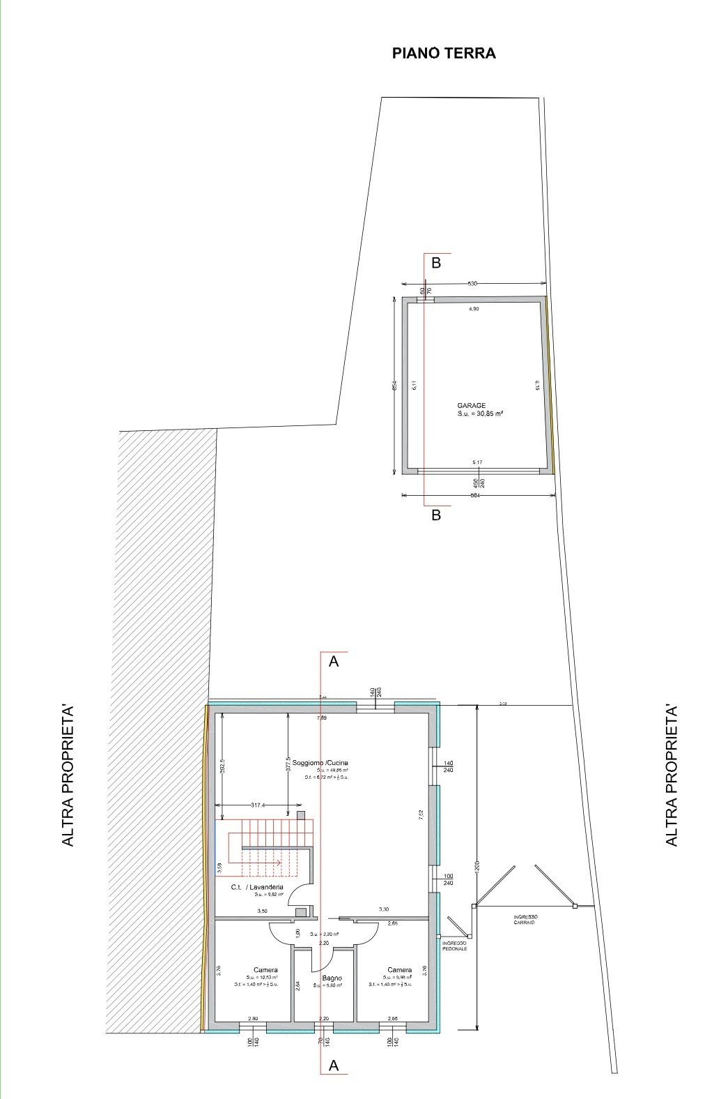 Garage doppio di 30 mq, perfetto per due auto e spazio aggiuntivo per bici o attrezzature.