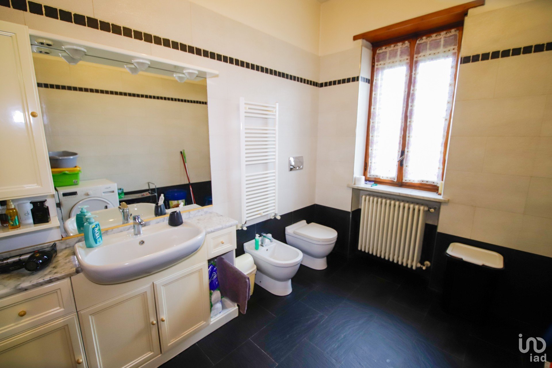 Al piano terra, invece troviamo la cantina, il locale di sgombero, un bagno, la lavanderia e un box auto doppio.