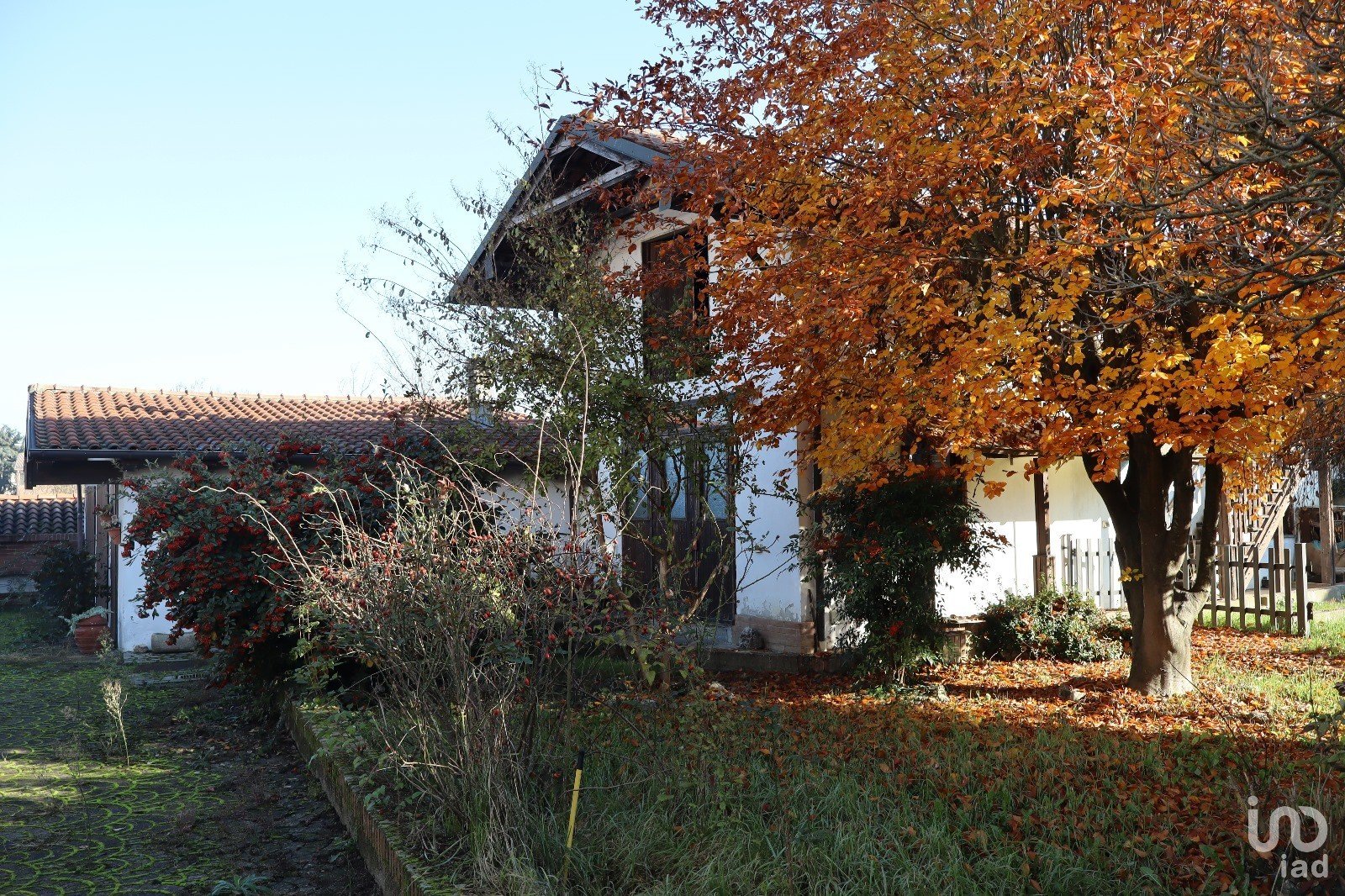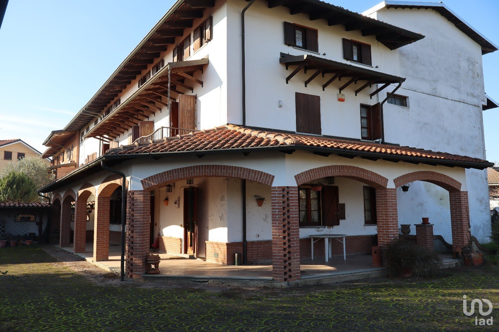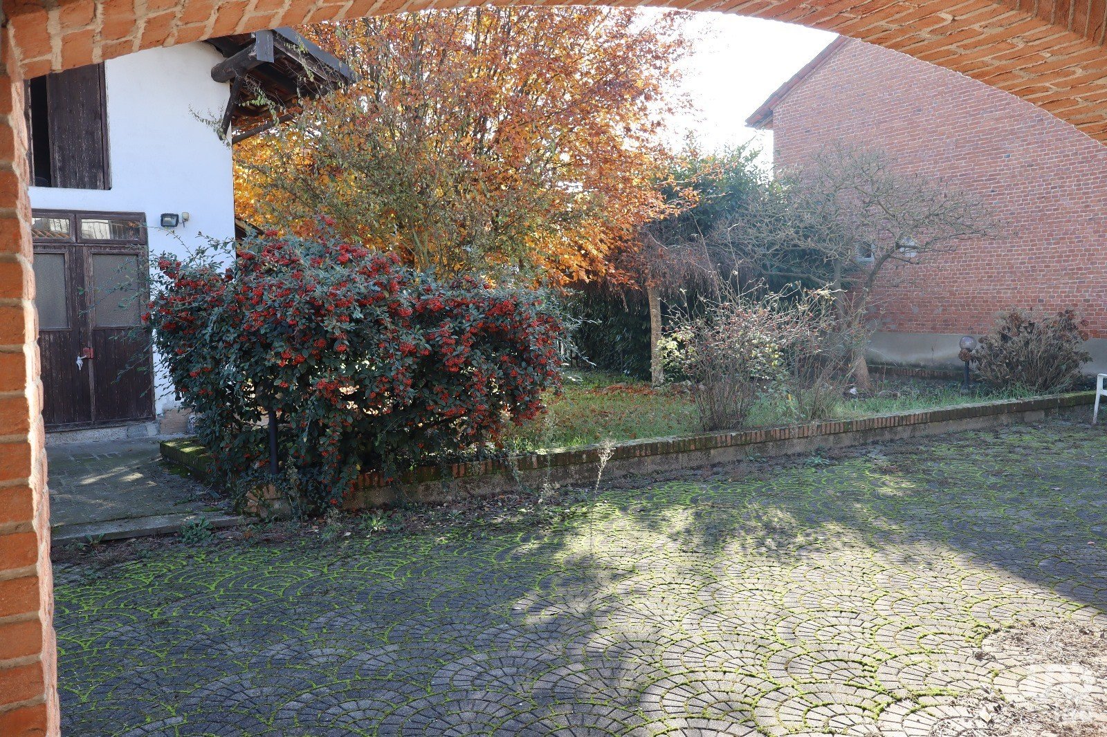 - Ampio cortile piastrellato con autobloccanti, prato con piante ornamentali e area destinabile ad orto