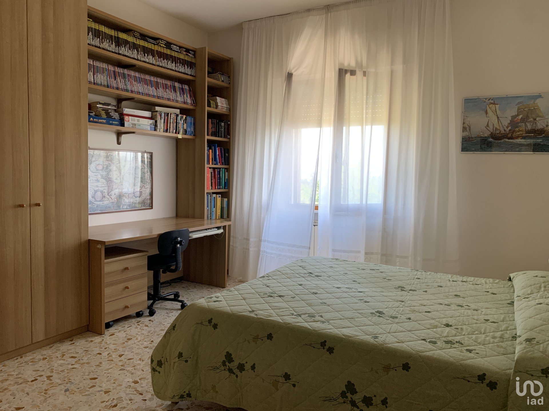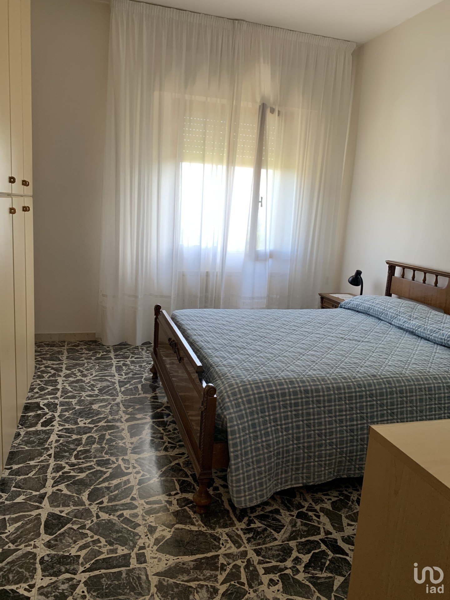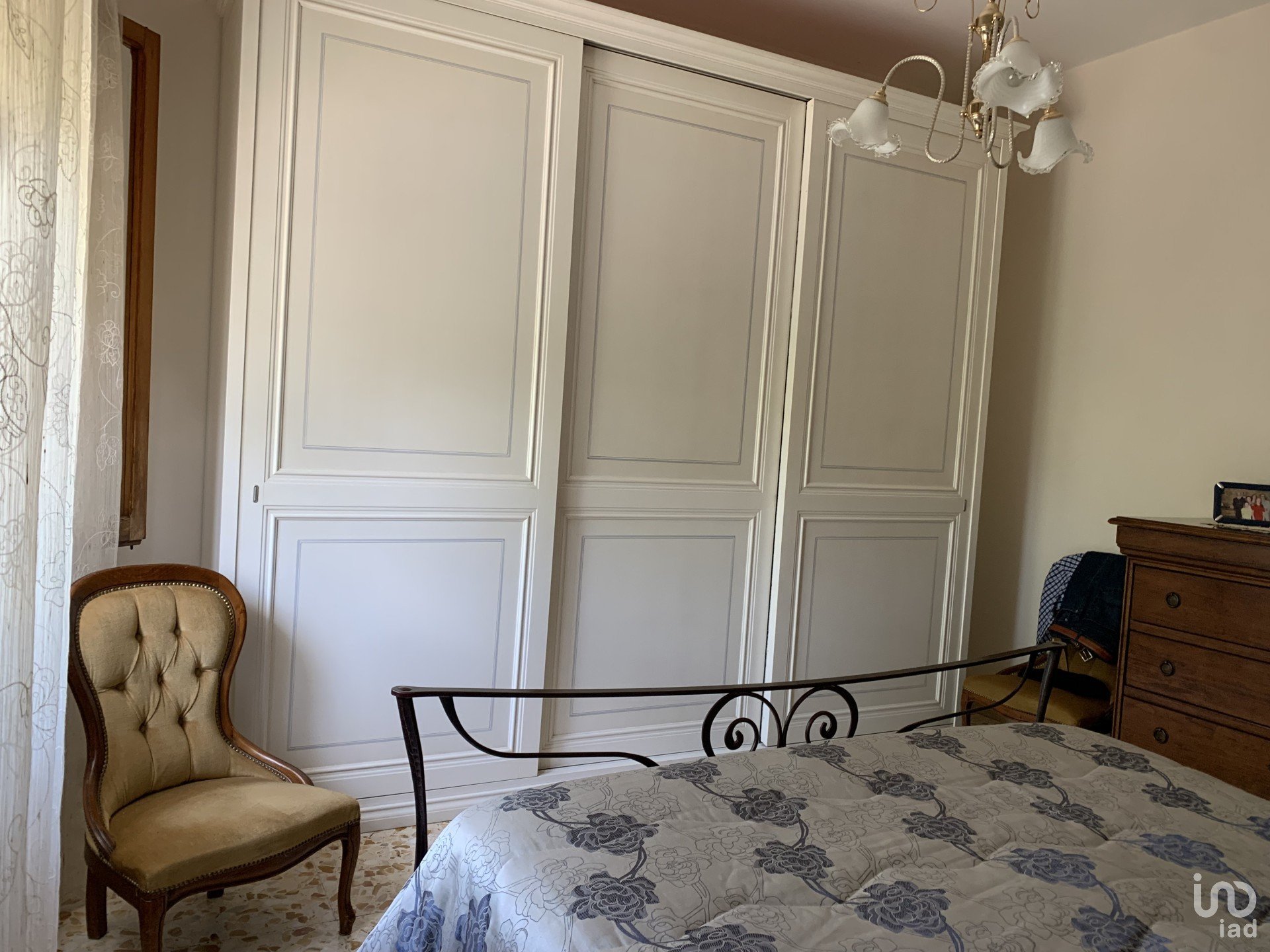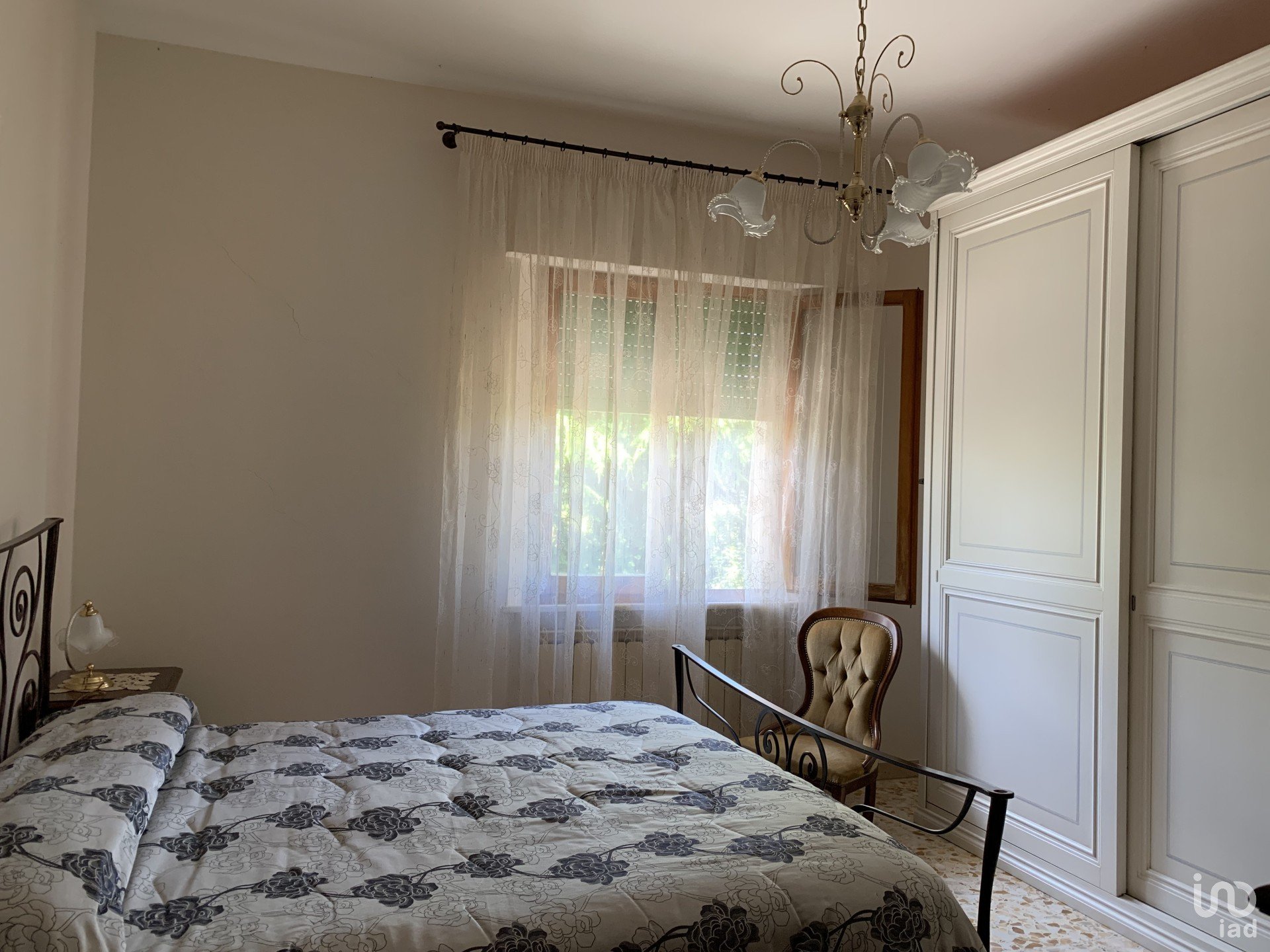 La zona notte ospita tre camere matrimoniali, un bagno principale con antibagno e ripostiglio, e un secondo bagno con doccia.