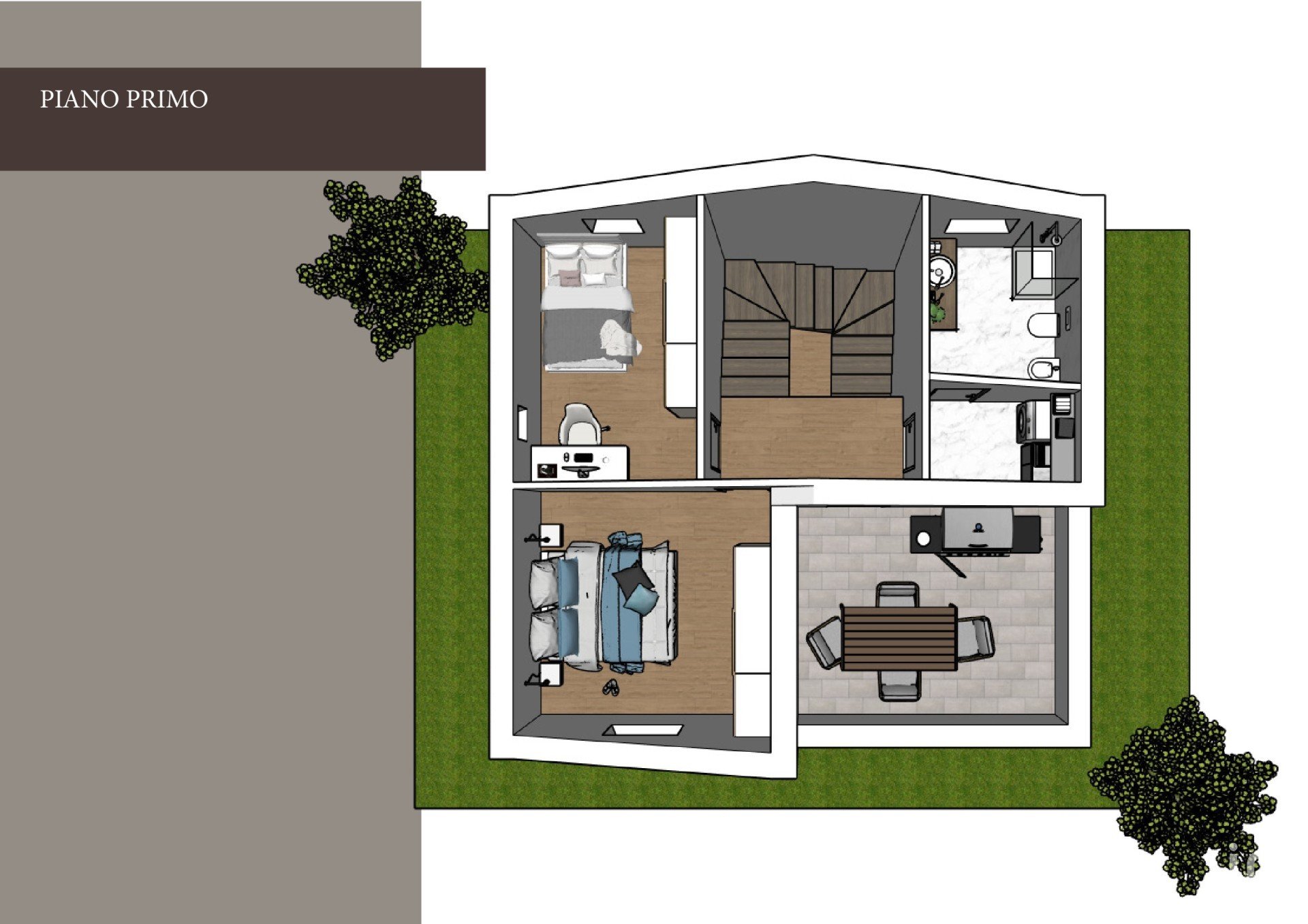 Piano primo (soffitta di 68 mq): un’area versatile che può essere trasformata in ulteriore spazio abitativo, studio, palestra o zona relax.