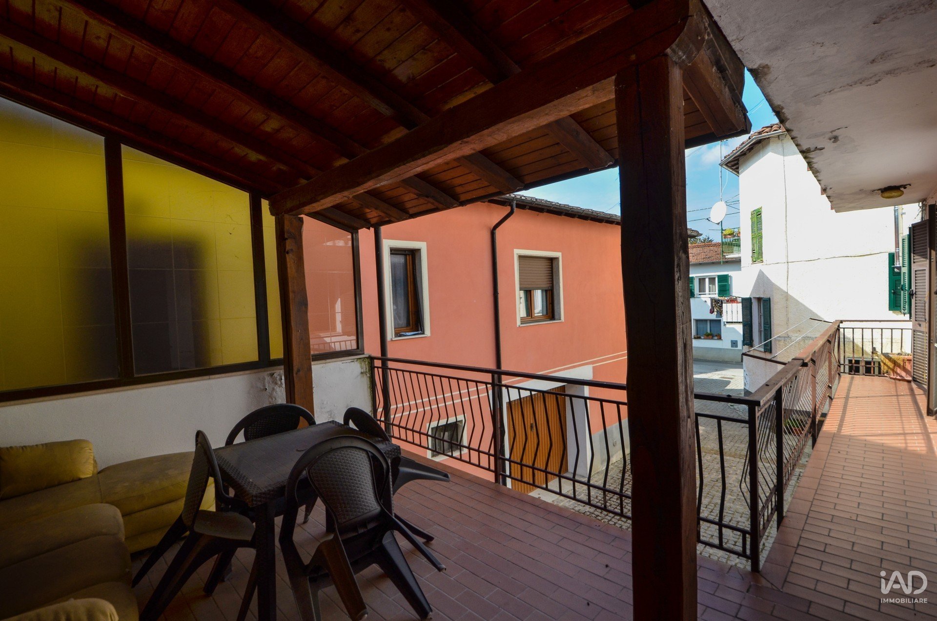 Al primo piano, il cuore dell’abitazione: una cucina luminosa e un ampio salone affacciati entrambi su un balcone e su un terrazzo coperto, perfetto per pranzi all’aperto, momenti di relax o cene estive. Sullo stesso piano trovano spazio un bagno finestrato e una prima camera da letto con balcone.