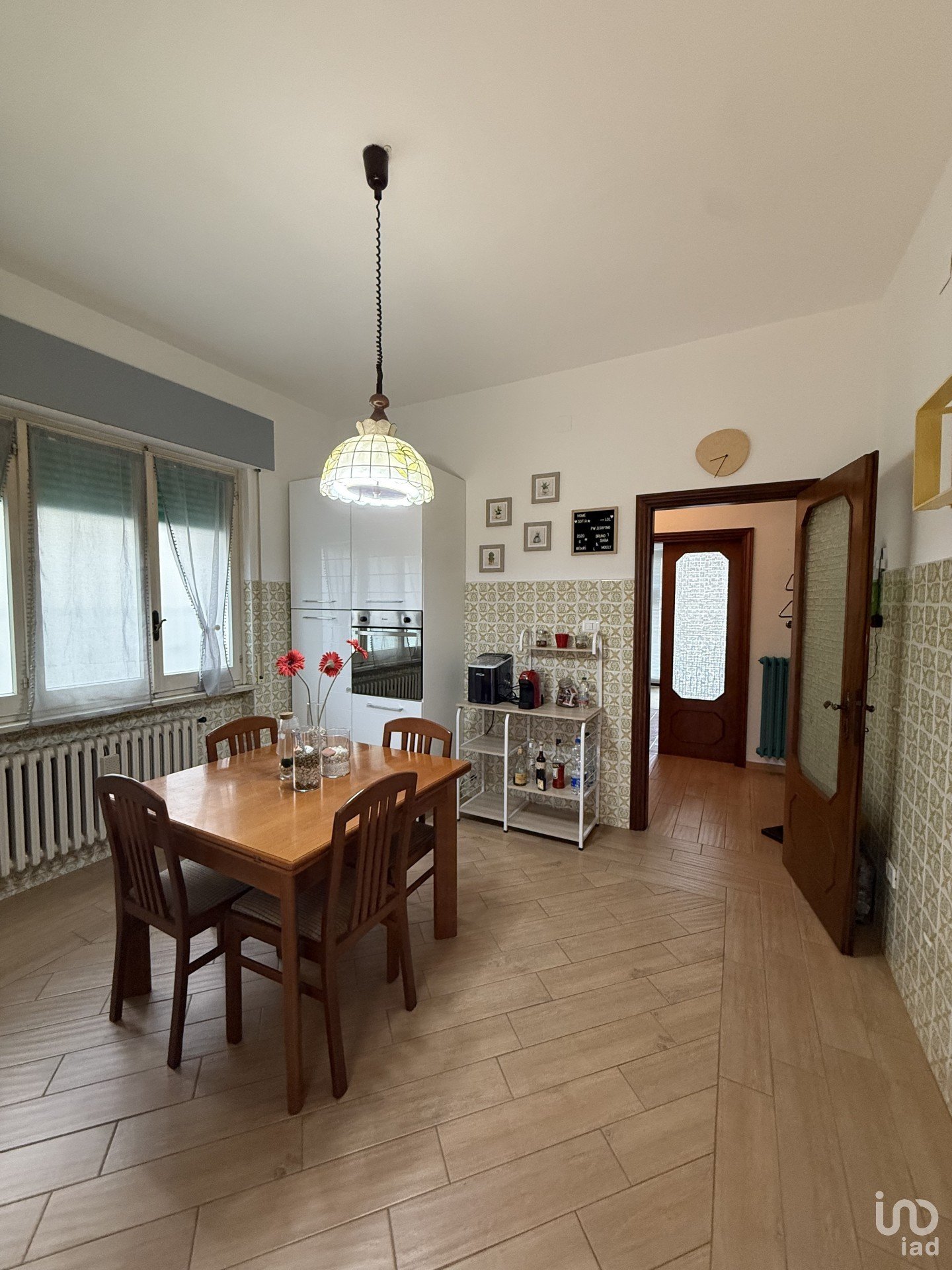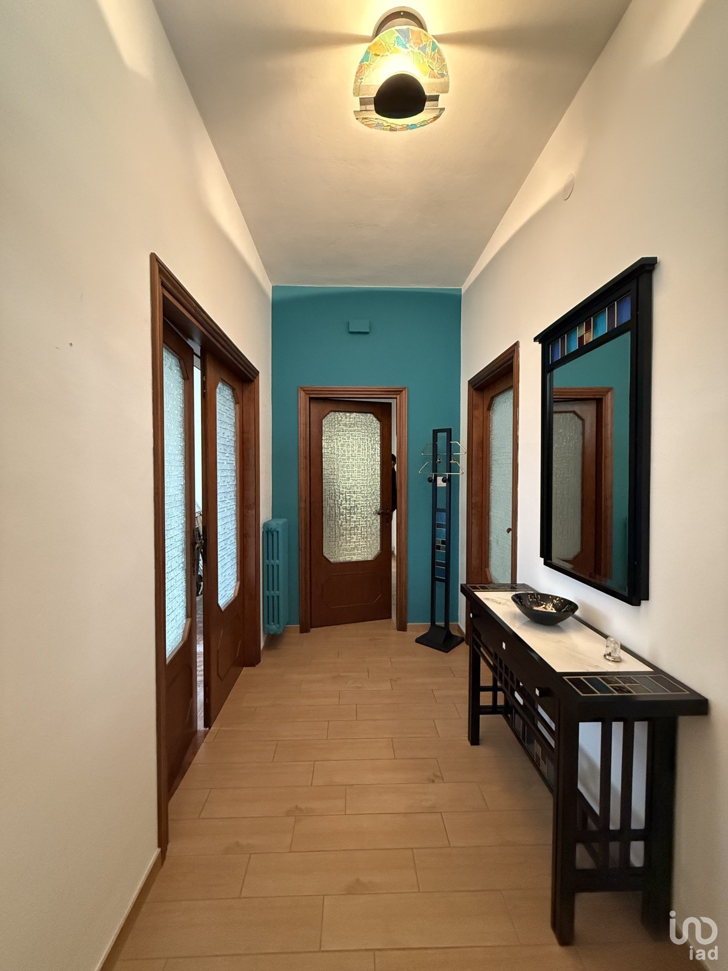 Piano Secondo (90 mq): ingresso che è stato trasformato con una vetrata per aumentare la luce naturale, corridoio centrale, tre camere da letto, bagno finestrato, cucina abitabile con anticucina.