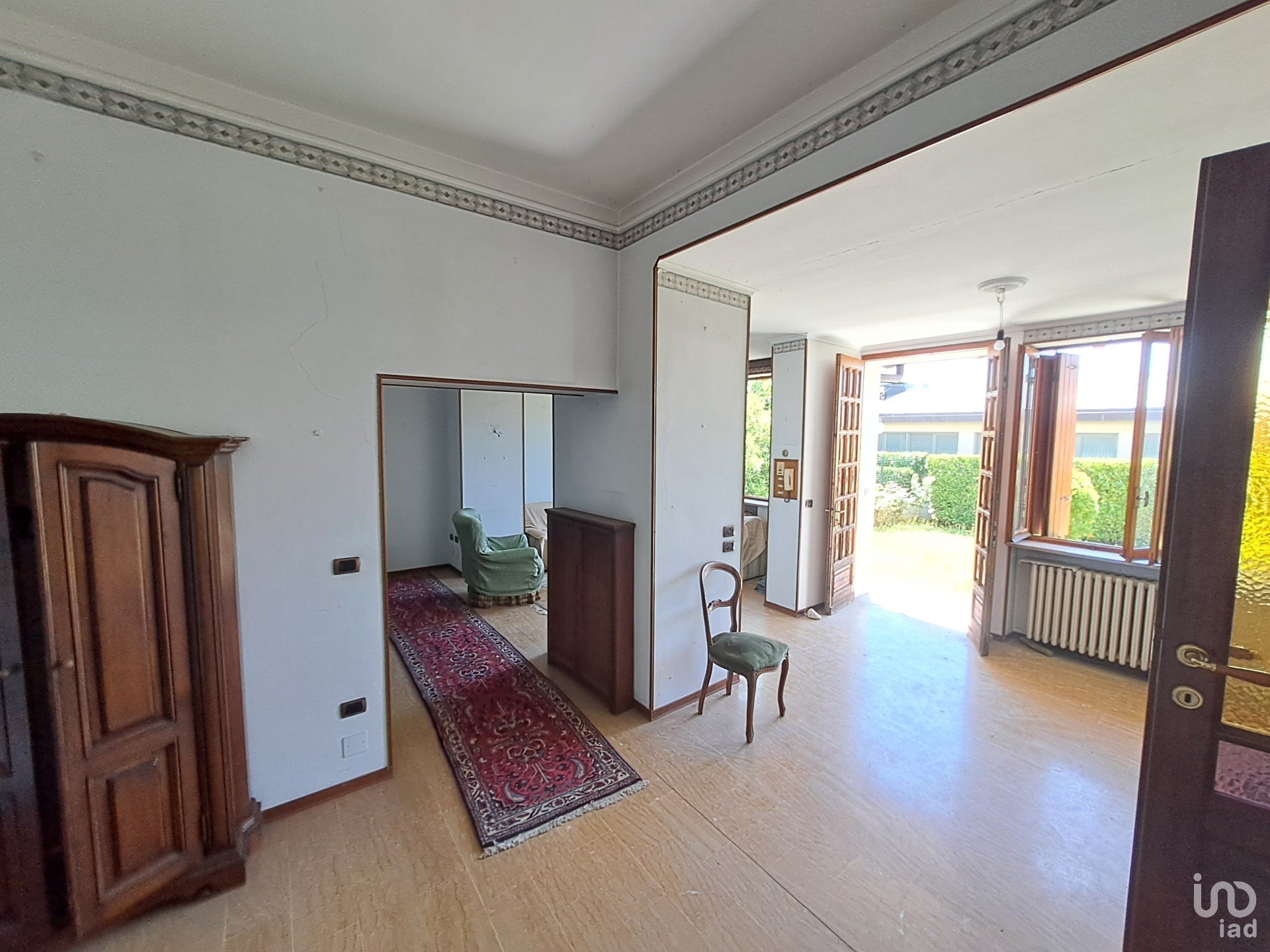 Pavimenti in marmo, porte interne di pregio in stile classico, infissi in legno con persiane e spazi generosi rendono questa abitazione accogliente e ricca di carattere. Pur non essendo abitata da alcuni anni, è stata mantenuta con cura e richiede solo interventi di aggiornamento e il ripristino dell’impianto di riscaldamento.