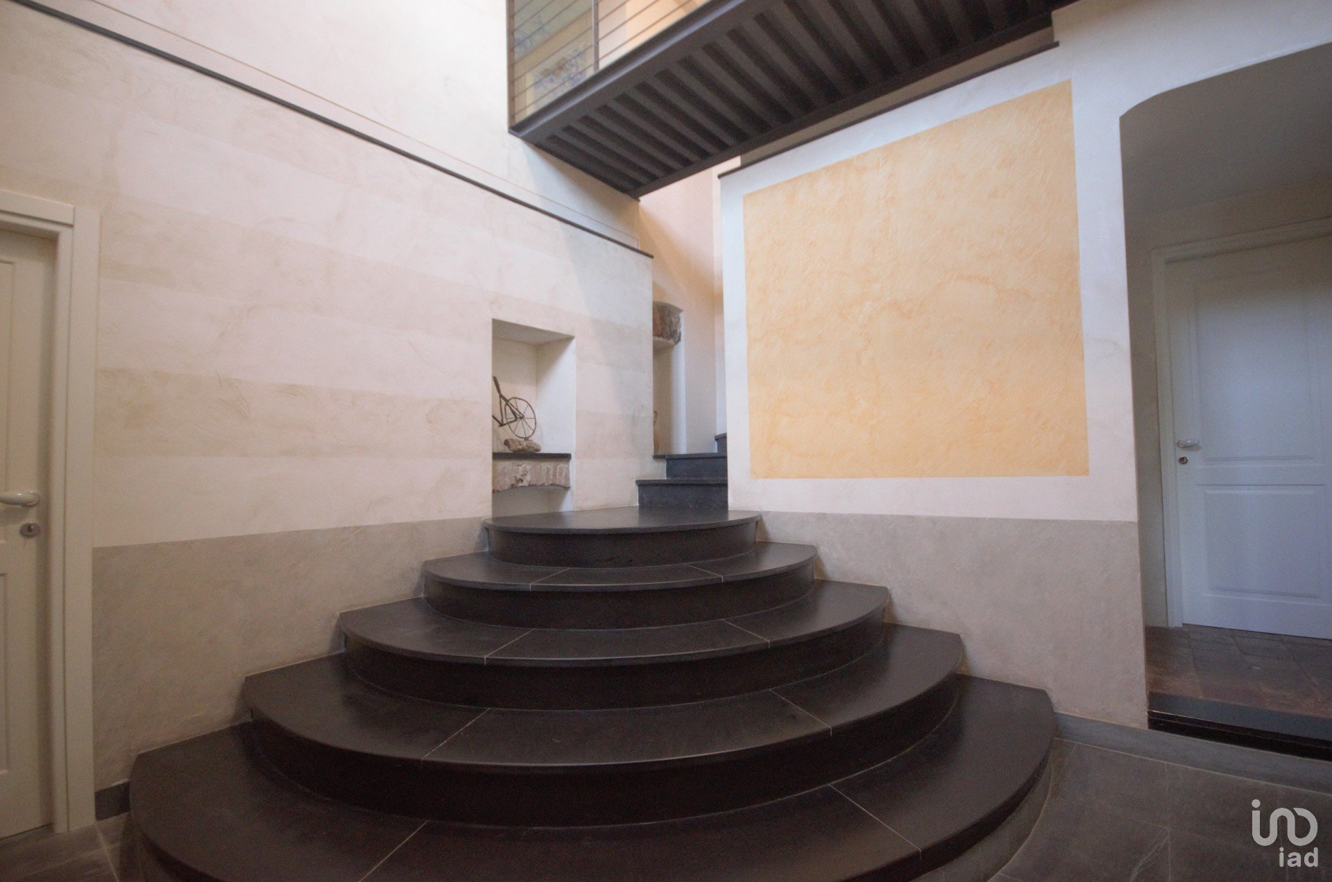 Entrando si viene accolti da un bellissimo ingresso dal quale si accede ad un esclusivo salone con un meraviglioso camino doppio.