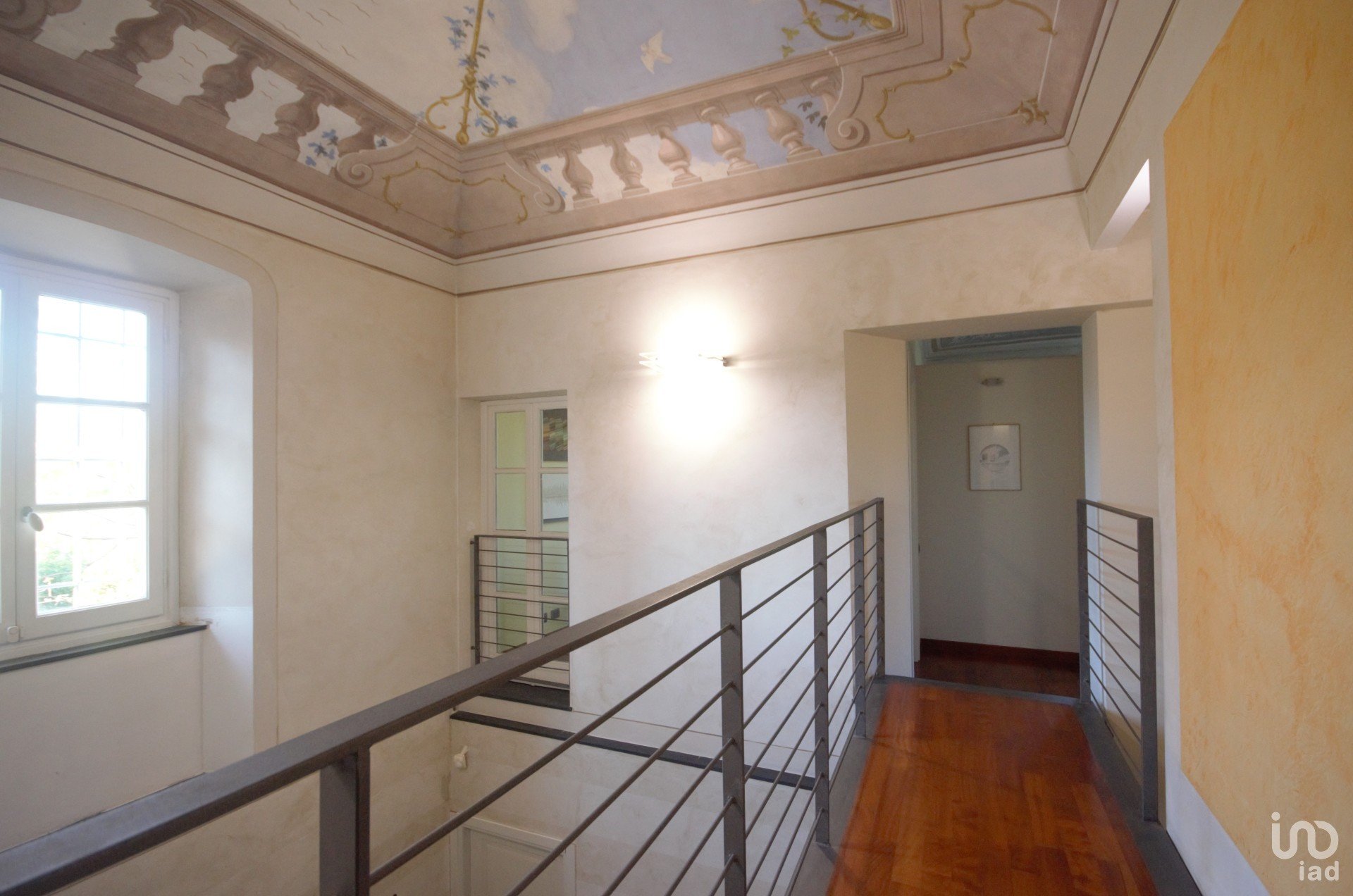 Dall’ingresso tramite una bellissima scala in ardesia si sale al piano superiore arrivando su una passerella sospesa che collega le due ali della villa, il piano è cosi suddiviso: 3 camere da letto, un salone adibito ad ufficio, una cabina armadio, 2 bagni e una lavanderia. Inoltre dispone di 4 posti auto, 2 dei quali interni al cancello scoperti e i restanti 2 esterni coperti parzialmente da una struttura di pannelli fotovoltaici.
