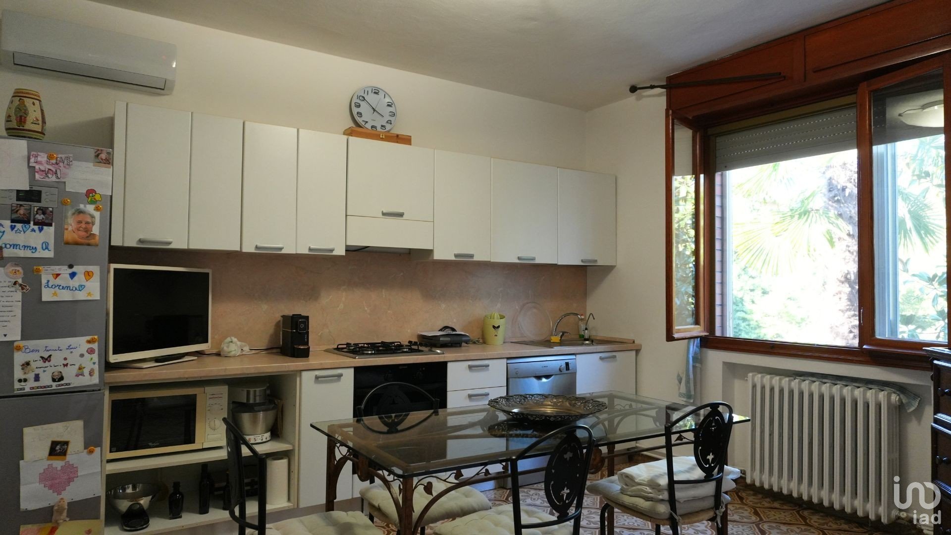 Il riscaldamento è gestito in modo versatile: al piano terra trovi una stufa a legna e termosifoni, mentre al primo piano una stufa a pellet e termosifoni. L'aria condizionata con pompe di calore, presente sia nella zona giorno che in quella notte, assicura il clima perfetto tutto l'anno.