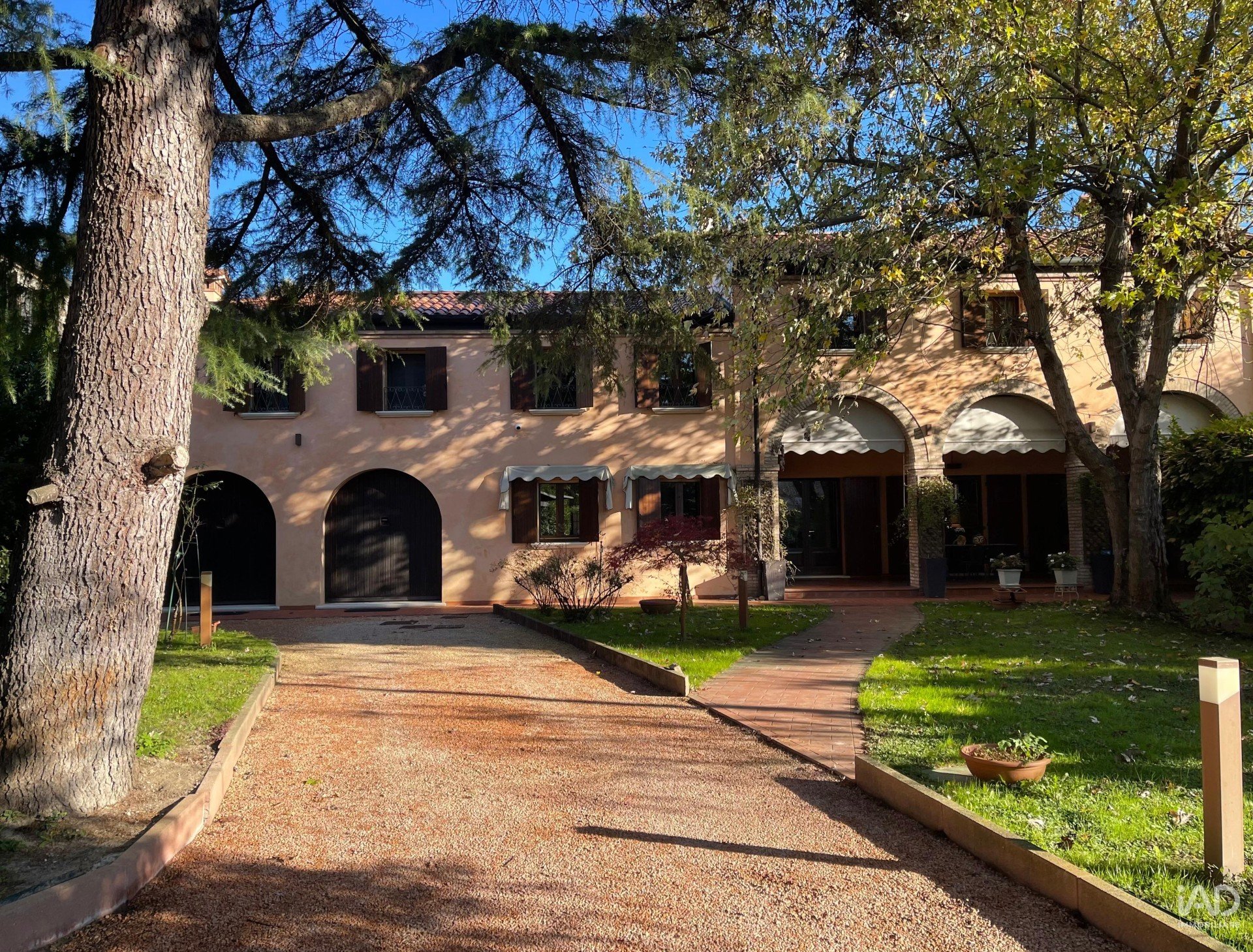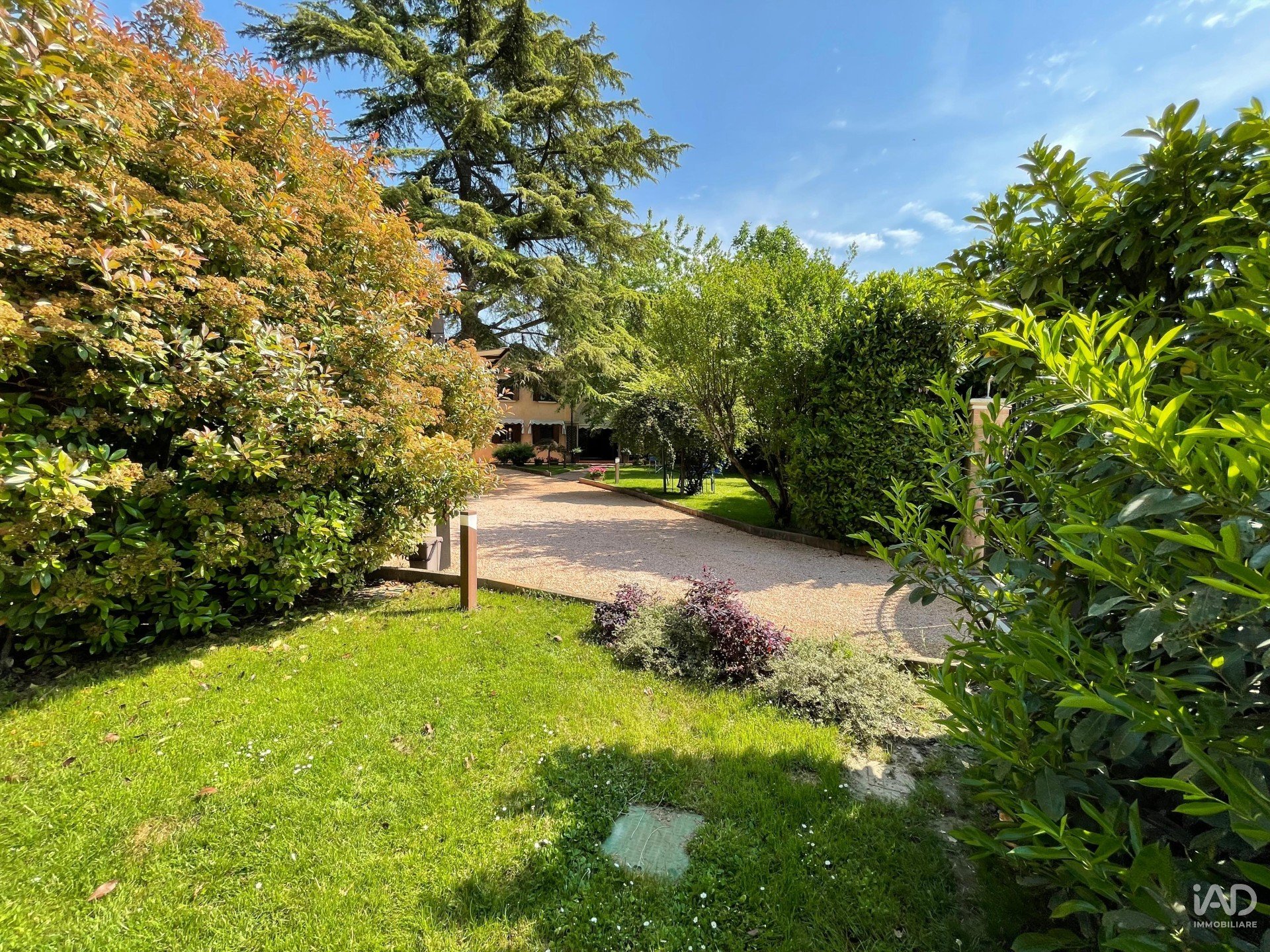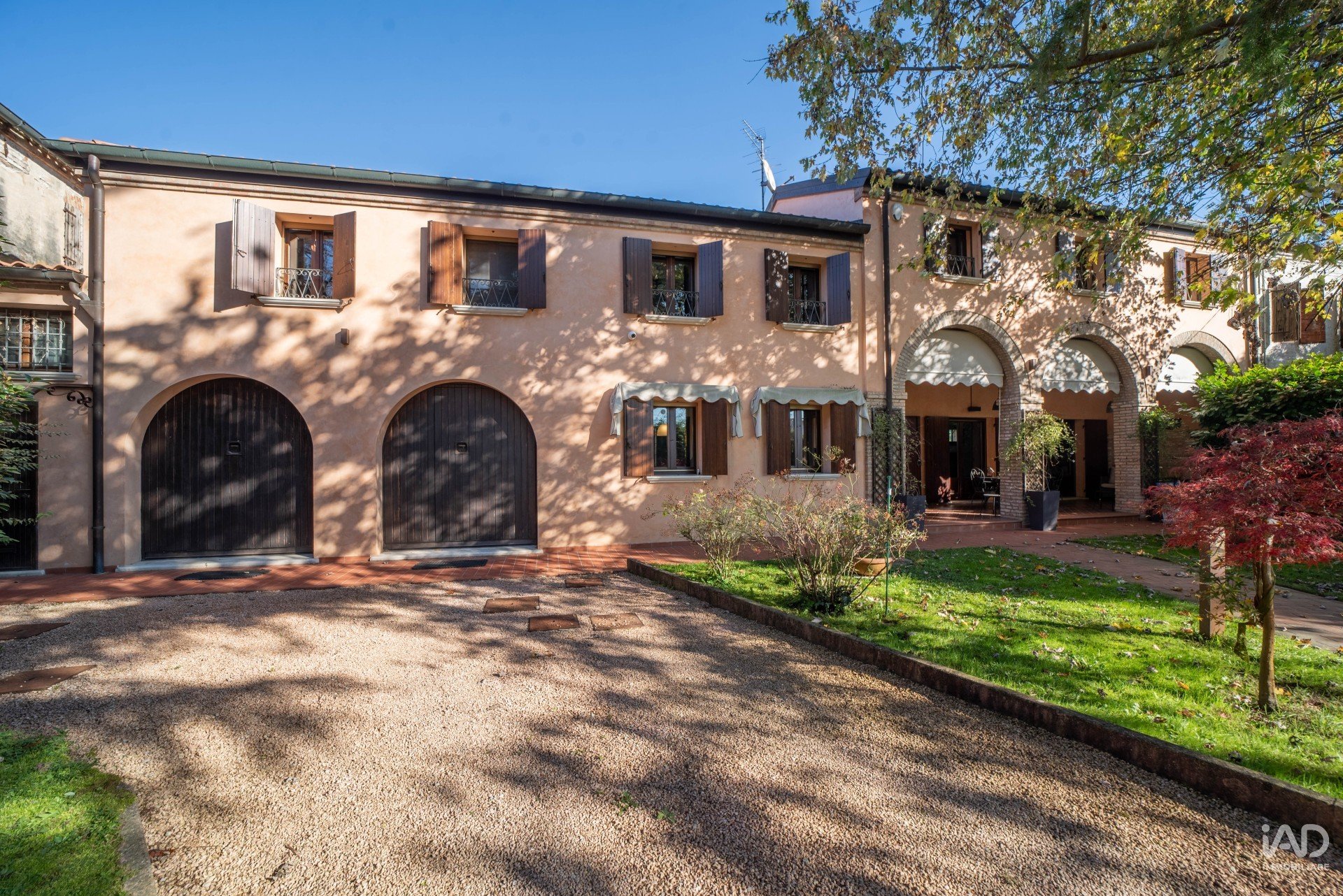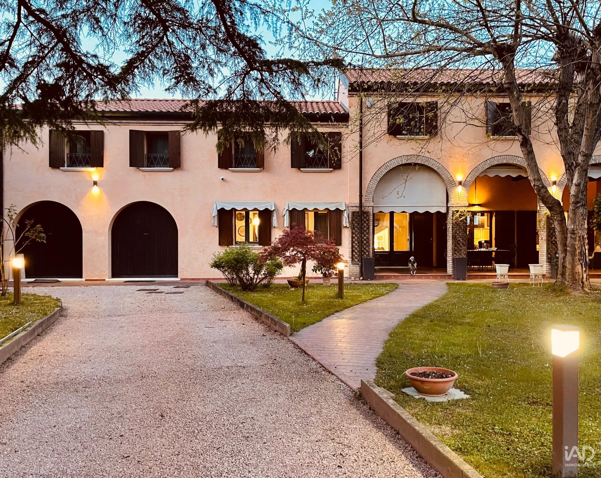 Ampio porticato ideale per cene conviviali e momenti di relax all’aperto, affacciato su un curato giardino piantumato con tettoia per due posti auto.