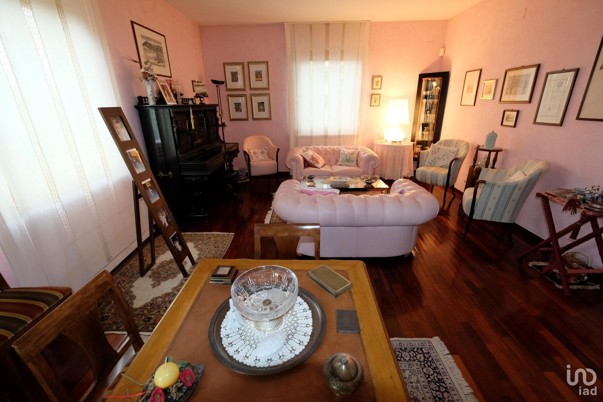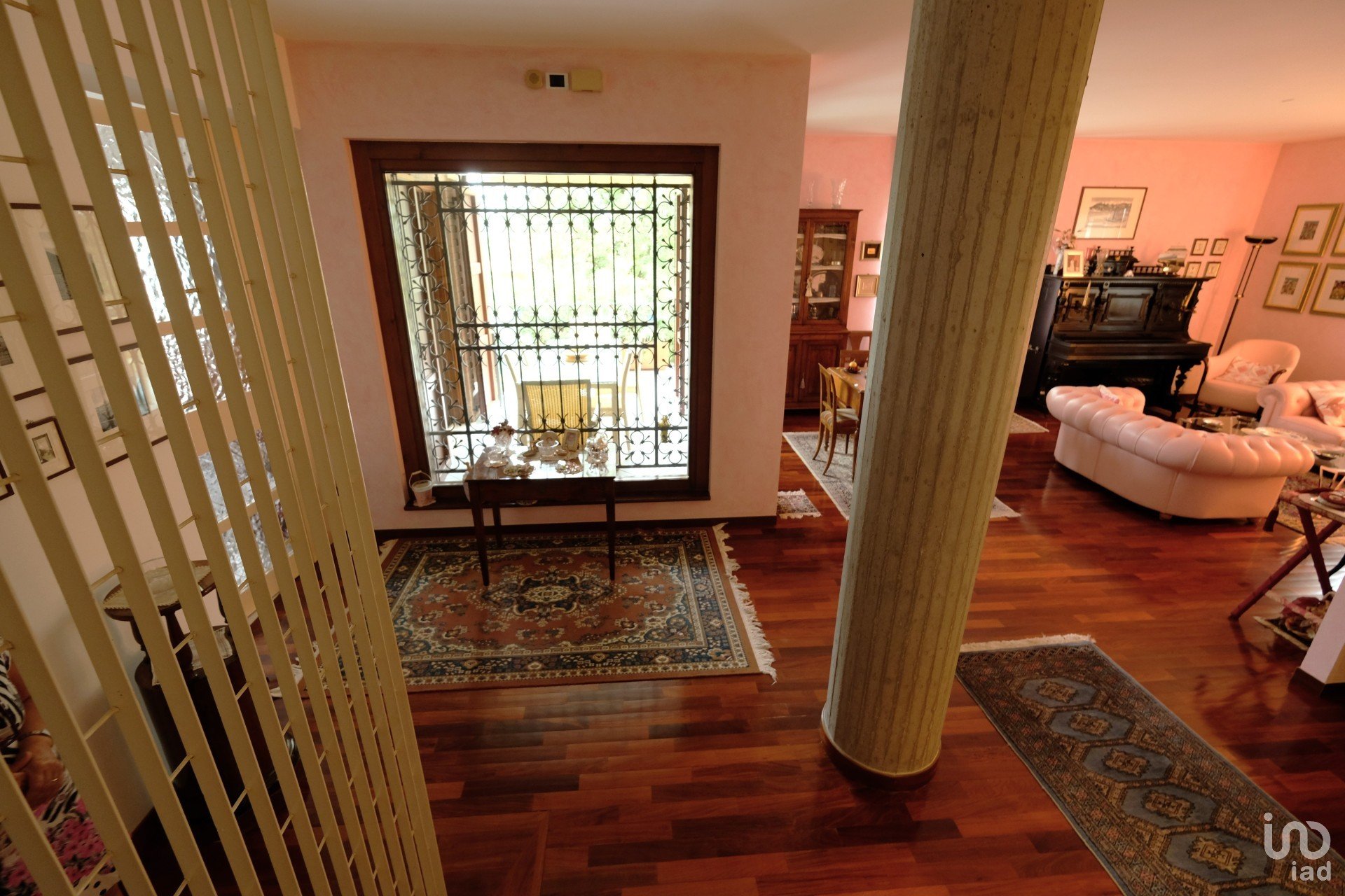 Al piano rialzato: l’appartamento principale con grande sala, open space, cucina abitabile, accesso al parco, 3 grandi camere, due bagni con accessori preziosi come i rivestimenti in cotto veneto.