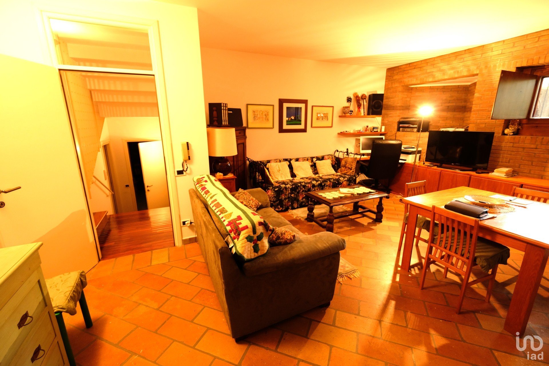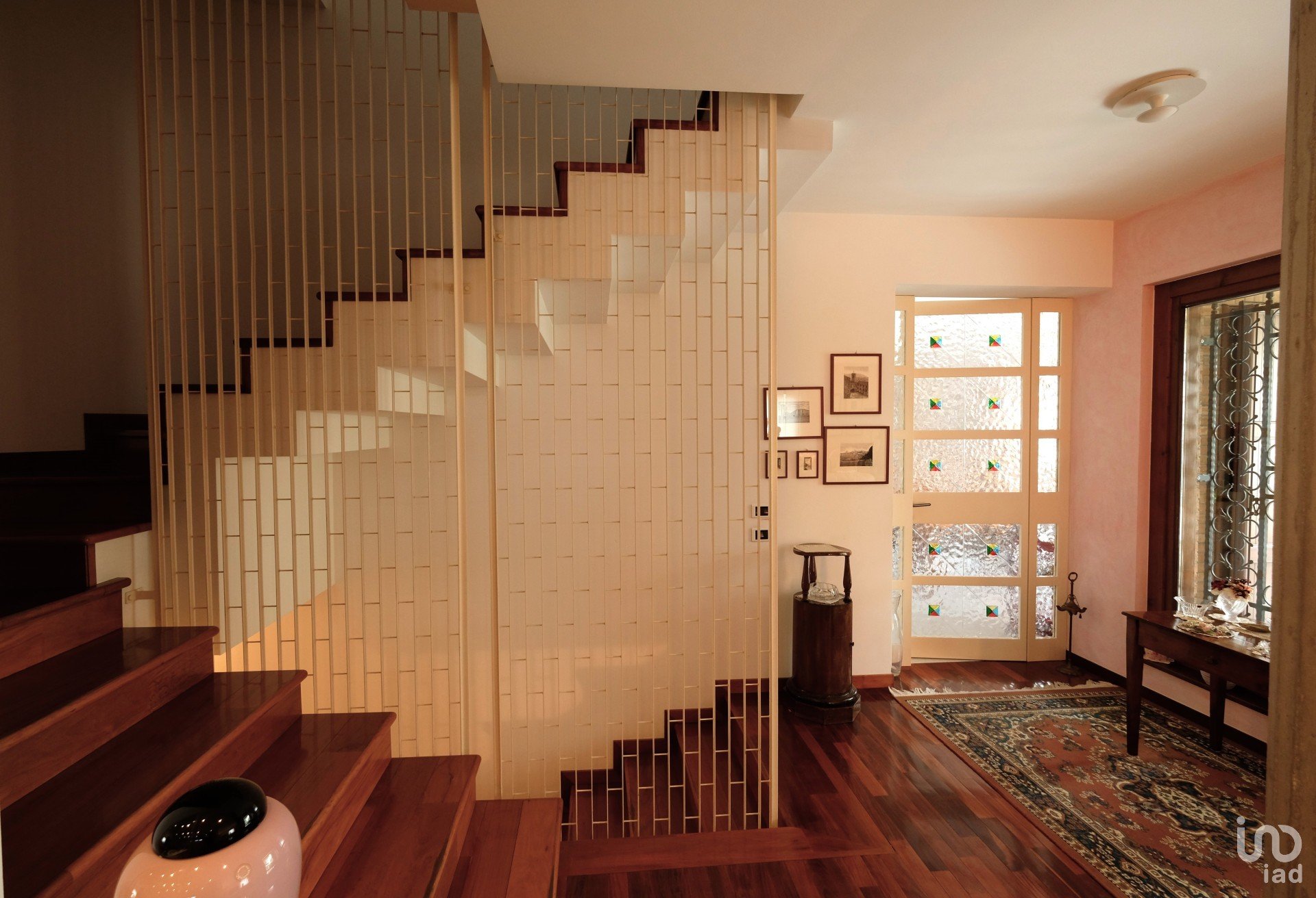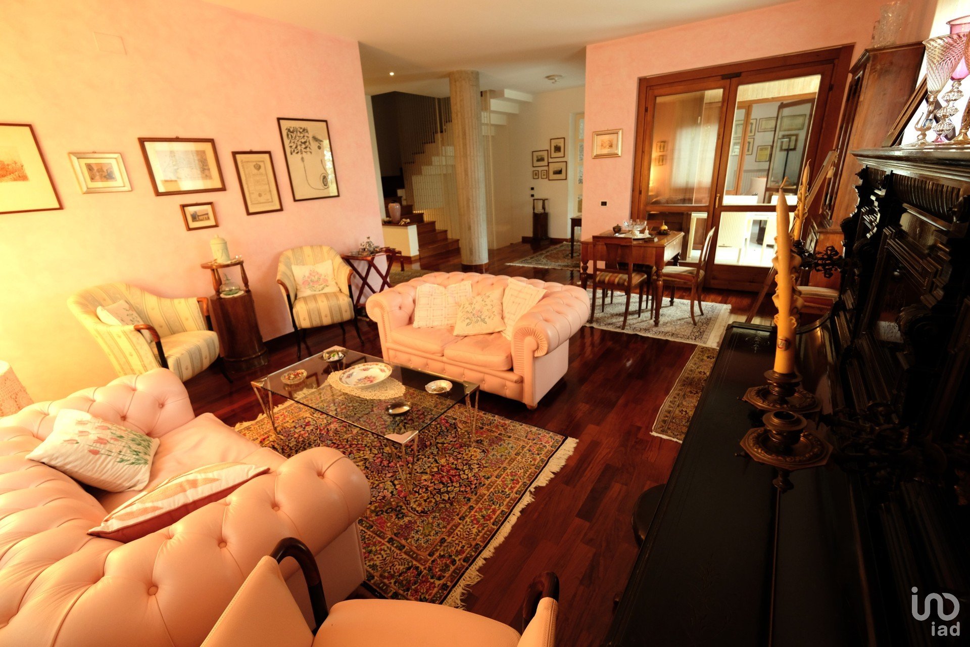 Appena si entra in casa si percepisce immediatamente un senso di accoglienza e calore donato dai materiali usati per le finiture come la pavimentazione in pregiato legno e monocottura, elementi di design che coniugano funzionalità ed estetica come la bella scala in legno a vista con gradini a toro smussato, la grande cucina e il camino centrale alla nella zona living con rivestimento in marmo nero marquina.