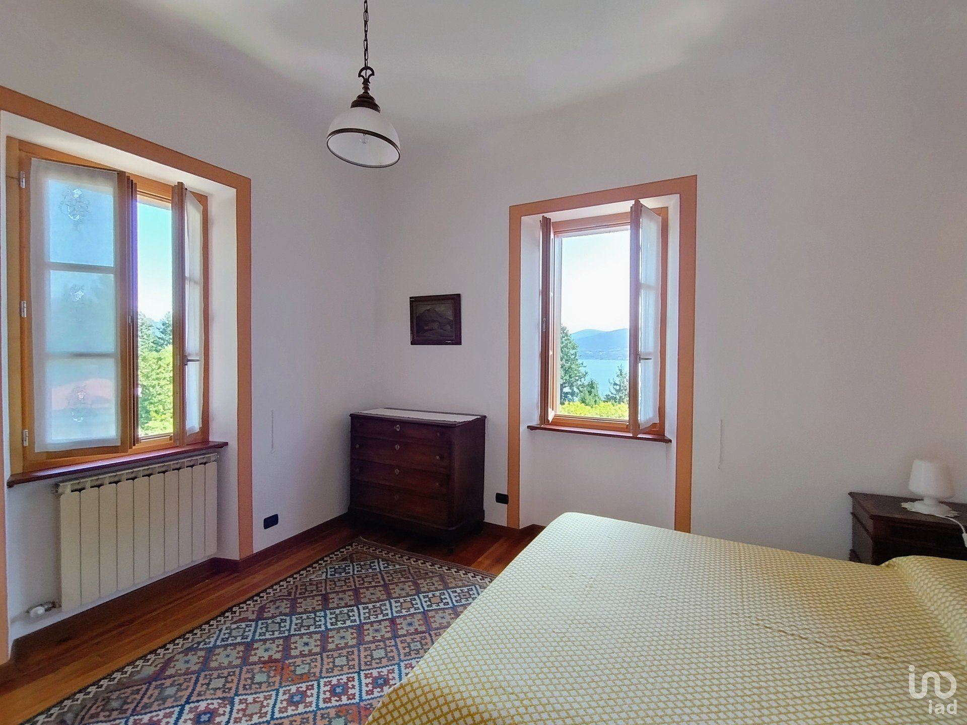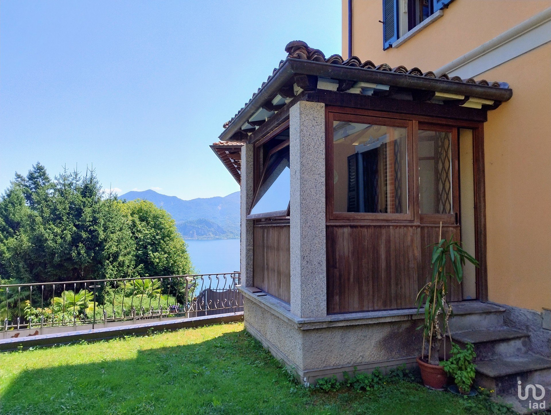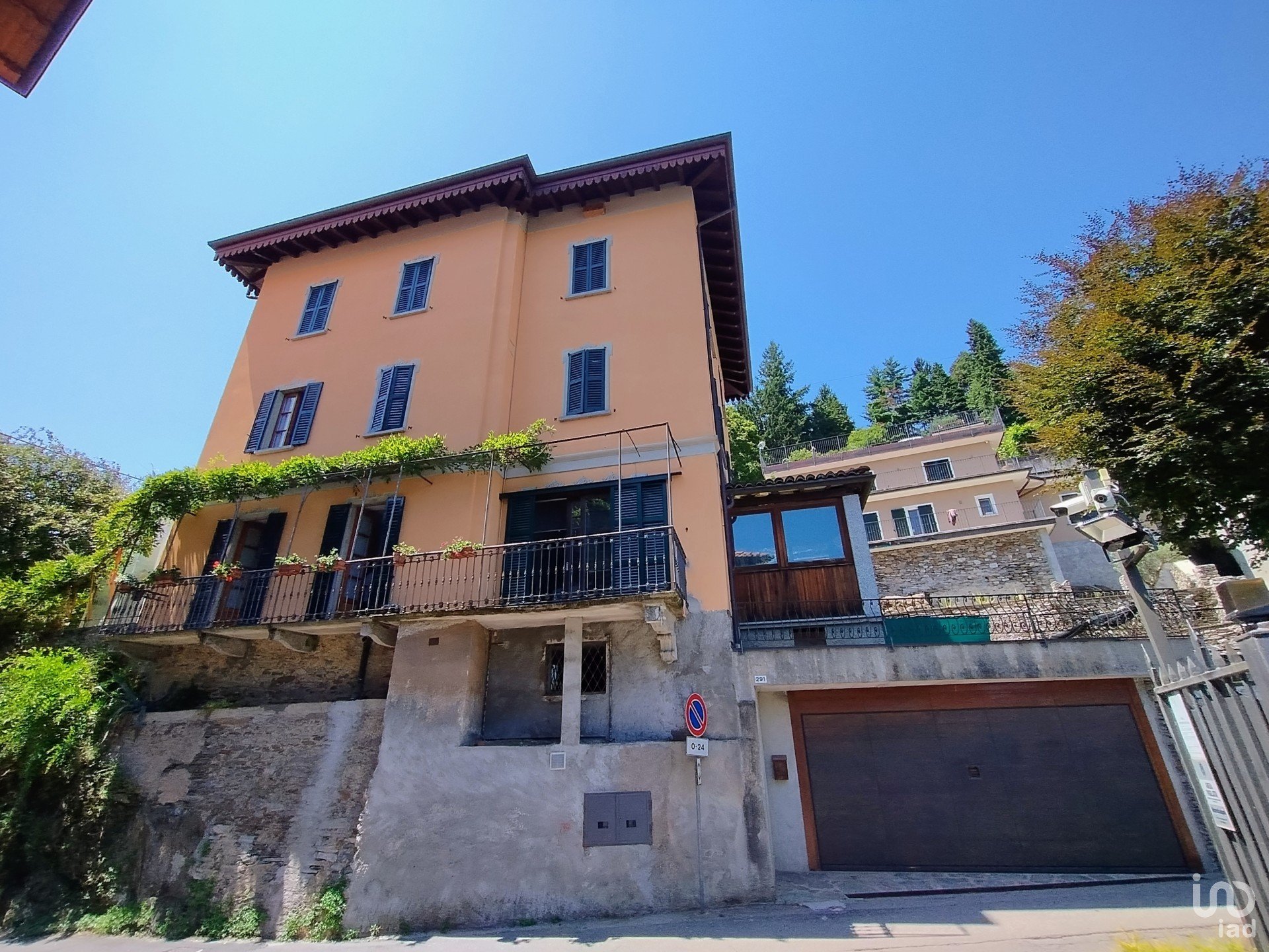 Nel suggestivo borgo di Ronco di Ghiffa proponiamo in vendita un incantevole residenza d’epoca con un bellissimo giardino con vista mozzafiato sul Lago Maggiore. Questa casa risalente ai primi anni del ‘900 è stata completamente ristrutturata con grande cura mantenendo dettagli e finiture originali e preziose: porte con vetri intarsiati, maniglie in ottone, decori a soffitto, una splendida meridiana dipinta in facciata, il tetto in legno merlato. Il giardino d’ingresso ha un bellissimo tavolo in sasso ombreggiato da piante ed essenze coltivate con grande cura, un luogo incantevole dove consumare i pasti all’aperto. Al primo appartamento si accede dal piano terreno: qui troviamo una grande cucina affacciata sul balcone, un bagno di servizio, una veranda che da accesso diretto al giardino, completa il piano un salone doppio, molto luminoso che affaccia sul terrazzo ed è caratterizzato da una scala in legno dal design ricercato che conduce al piano superiore dove troviamo la camera padronale con cabina armadio, una seconda camera matrimoniale, uno studio ed una terza camera oltre ad una sala da bagno con doccia. Il secondo appartamento si trova al secondo piano e vi si accede da una caratteristica scala interna in sasso, finestrata e con corrimano in legno e ottoni di antica fattura. L’ingresso separa zona giorno e zona notte: a destra troviamo una sala doppia con una bellissima stufa a legna in maiolica e la cucina abitabile, nella zona notte due ampie camere matrimoniali, un bagno con doccia e finestra. Dalle finestre, tutte dotate di vetrocamera si può godere di una splendida vista sul lago, e dalla scala interna si arriva alla soffitta ad oggi utilizzata a deposito. La proprietà è completata da un garage doppio con serranda elettrificata, collegato internamente alla casa, da una grande cantina ed altri locali accessori: tra questi l’antica cucina con camino, una grande cappa e pavimenti in antica graniglia da adibire a zona conviviale. Questa dimora è l’ideale per accogliere due nuclei familiari oppure per essere messa a reddito come B&B o casa vacanza. Il lago dista poche centinaia di metri e può essere raggiunto anche a piedi, come i principali servizi, bar, ristorante, farmacia; un fornitissimo minimarket si trova a 20 mt dall’abitazione e da questo piccolo ma graziosissimo paese partono sentieri di trekking suggestivi e ben tenuti, il Parco della SS. Trinità con i suoi scorci imperdibili è a pochi passi. Un’opportunità unica, che unisce tranquillità e comodità a pochi minuti dalle rive del Lago Maggiore.