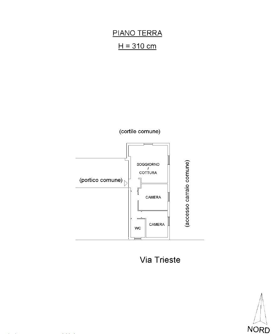 L’immobile si sviluppa su un unico livello ed è composto da un ingresso con disimpegno, soggiorno con angolo cottura, due camere da letto e un bagno.